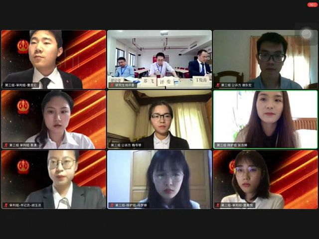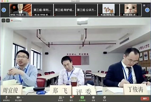 硕士研究生曹昆仑、易潇、雷嘉悦、胡玉洁组成的审判组进入Zoom会议室参与比赛。在庭审中,比赛双方于辩题所确定的事实基础上进行法律辩论,模拟审判程序,经过开庭阶段的活动程序、法庭调查、法庭辩论、公诉方与辩护方最后陈述、评议和宣判,完成比赛。下午5时,现场结算分数、评委点评。比赛结束,麻豆av