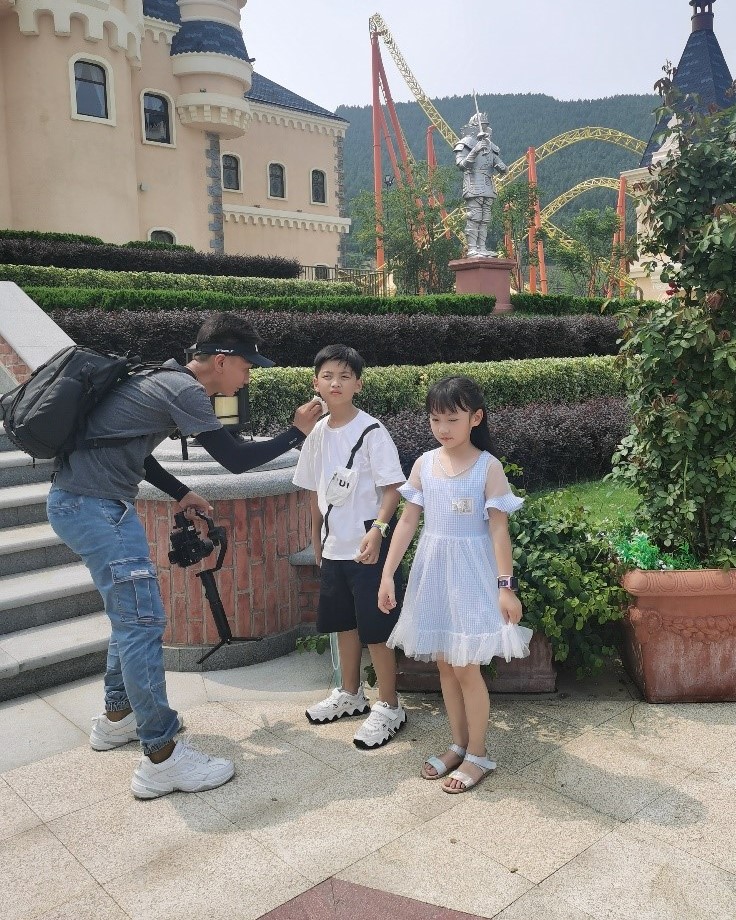 丁媛颖和夏雪怡同学在MCN组也顺利进行了实习工作。指导夏雪怡的老师同时主要负责产业经营,一般负责联系客户、给出方案。丁媛颖所在的“大梁工作室”,主要是负责《老将挑大梁》这个节目。她也在各个老师的指导下参与节目相关事务,例如学习采访和拍摄以及剪辑;例如联系和沟通表演人员,学习制作并撰写“大梁老年艺术团”微信公众号推文;例如跟进节目彩排以及正式拍摄进行现场调度,她讲道:“广播电视这个领域对于我来说,无疑是一个陌生而新奇的领域。在短短20天的实习期内,我得以从中间窥见新媒体运作的流程、节目拍摄的前中后准备,以及媒体人的不容易。‘线上一分钟,线下十年功’,一个优秀节目的背后,是紧锣密鼓的安排,是井井有条的规划,是严丝合缝的配合,是辛辛苦苦的跟进,是无数个幕前、幕后工作人员心血的结晶。” 全程参与徐州乐园宣传片拍摄的夏雪怡则对拍摄过程中的工作深有体会,对拍摄中的辛苦也深有体会,她提到,工作人员们都很辛苦。下午两点,外温31摄氏度,正是最热的时候。为了按时完成拍摄任务,工作人员都顶着太阳的曝晒,继续作业。摄影师们扛着沉重的相机设备跑来跑去,请来的小演员才7、8岁,一边流着汗一边努力地在镜头前展露微笑。