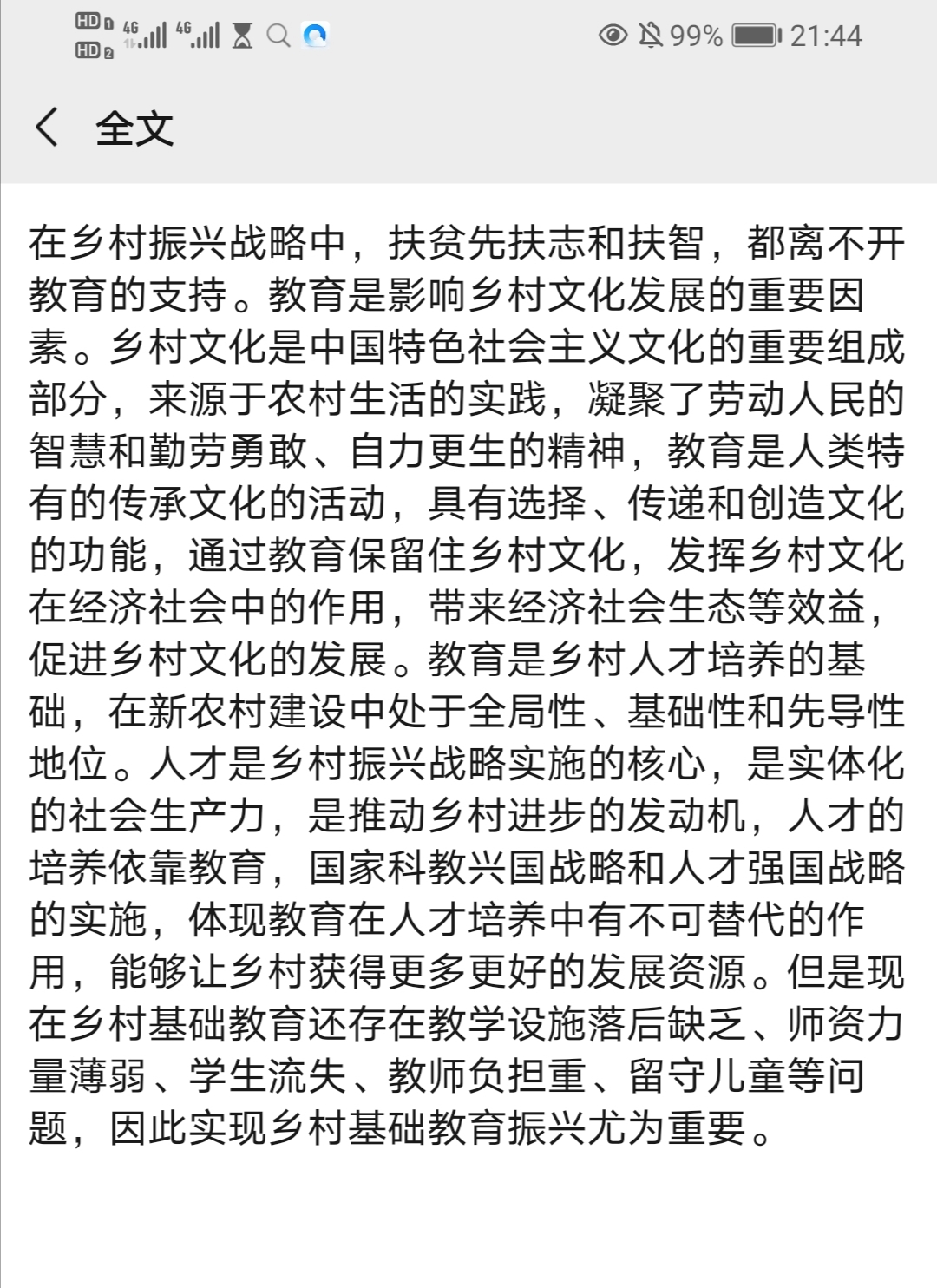 首先,团队的各个成员通过朋友圈、空间等形式,表达了自己对乡村教育的看法与期待。“教育是乡村人才培养的基础,在新农村建设中处于全局性、基础性和先导性地位。”然后,团队成员通过内部的讨论,进一步认知了实施乡村教育振兴的原因。“人才是乡村振兴战略实施的核心。”最后,团队成员通过资料的搜集,更加明确了乡村教育振兴的具体内容,了解了乡村老师的选拔分配政策和国家各项针对乡村的保护政策。