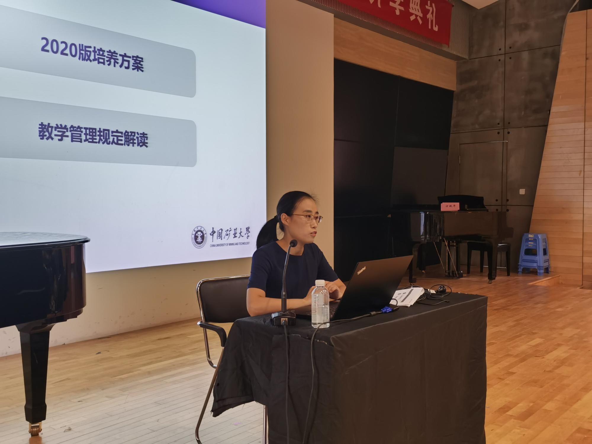 王艳华老师围绕2020版培养方案向同学们介绍了专业的基本情况,并且从本科教学管理规定、本科学籍管理规定、学业预警管理方式、处分管理规定、本科转专业管理方法等五个方面对同学们进行了详细的讲解。王老师尤其强调了考试纪律问题,通过历年来出现的典型事例,针对校规校纪作了具体阐述。最后,刘振副院长对此次讲座内容进行总结,并对新生提出自己的希望:希望同学们好好学习,自我约束、自我管理,早日制定目标和规划。