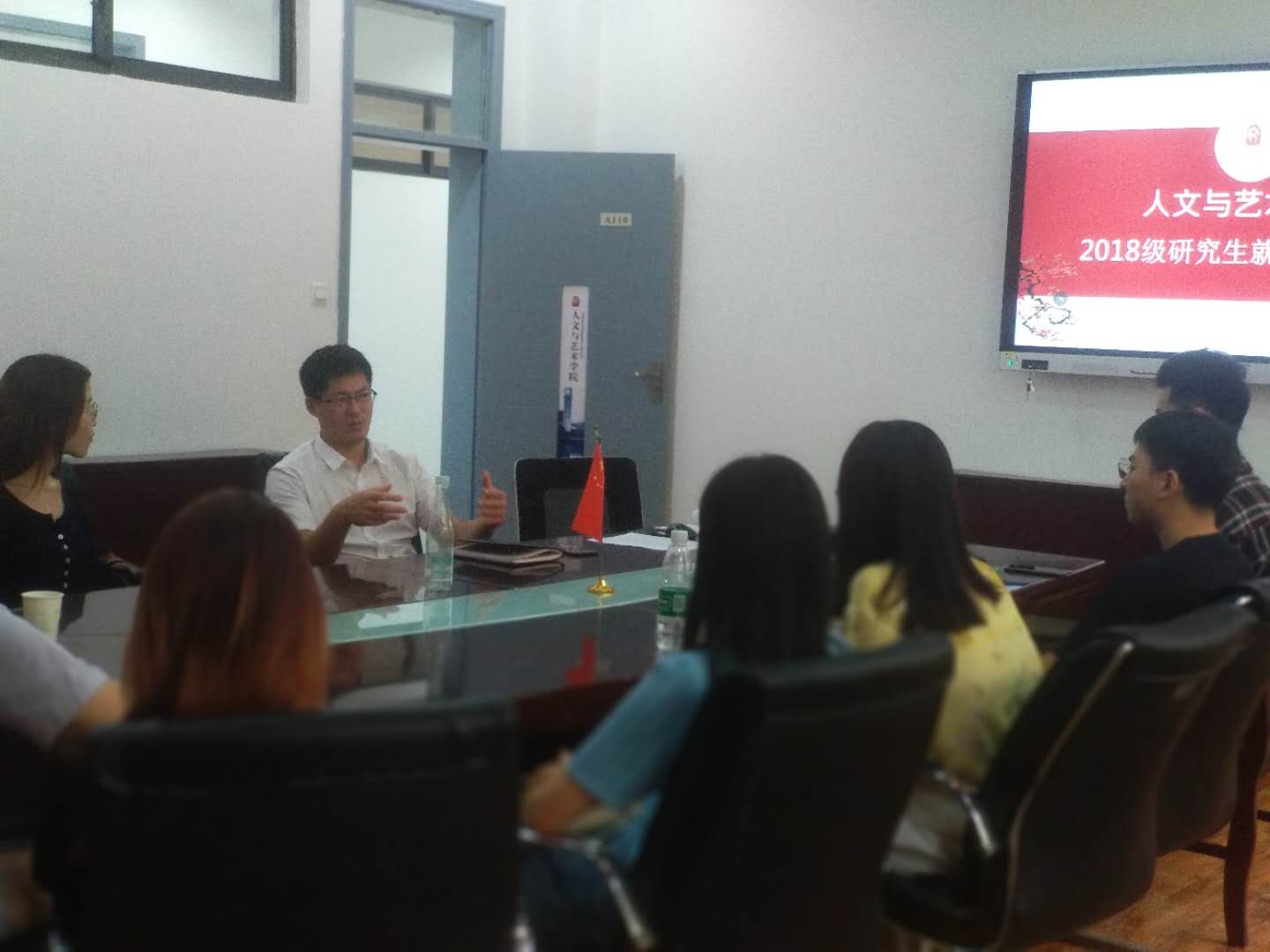 A110会议室召开,本次会议由研究生科研办任世存老师主持,院党委副书记丁恒星老师就应届生考公、考编、就业派遣等工作进行了详细讲解。