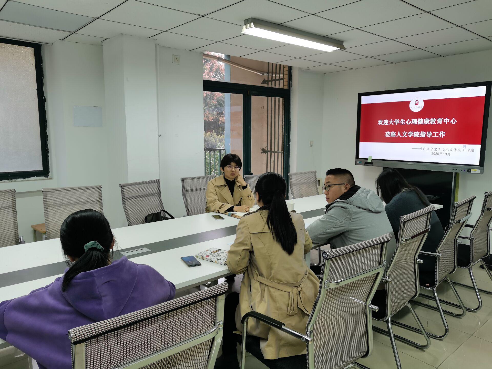 10月27日下午4时,大学生心理健康教育中心梁潇老师前来人文学院开展学生心理健康指导、调研工作并召开座谈会。此次会议于竹三党工委召开,人文学院各级辅导员出席此次座谈会。