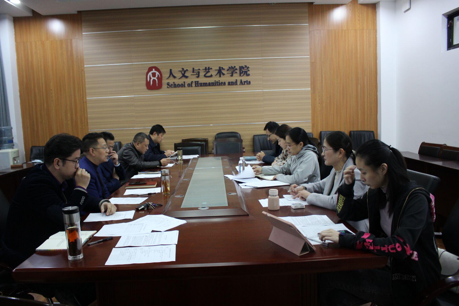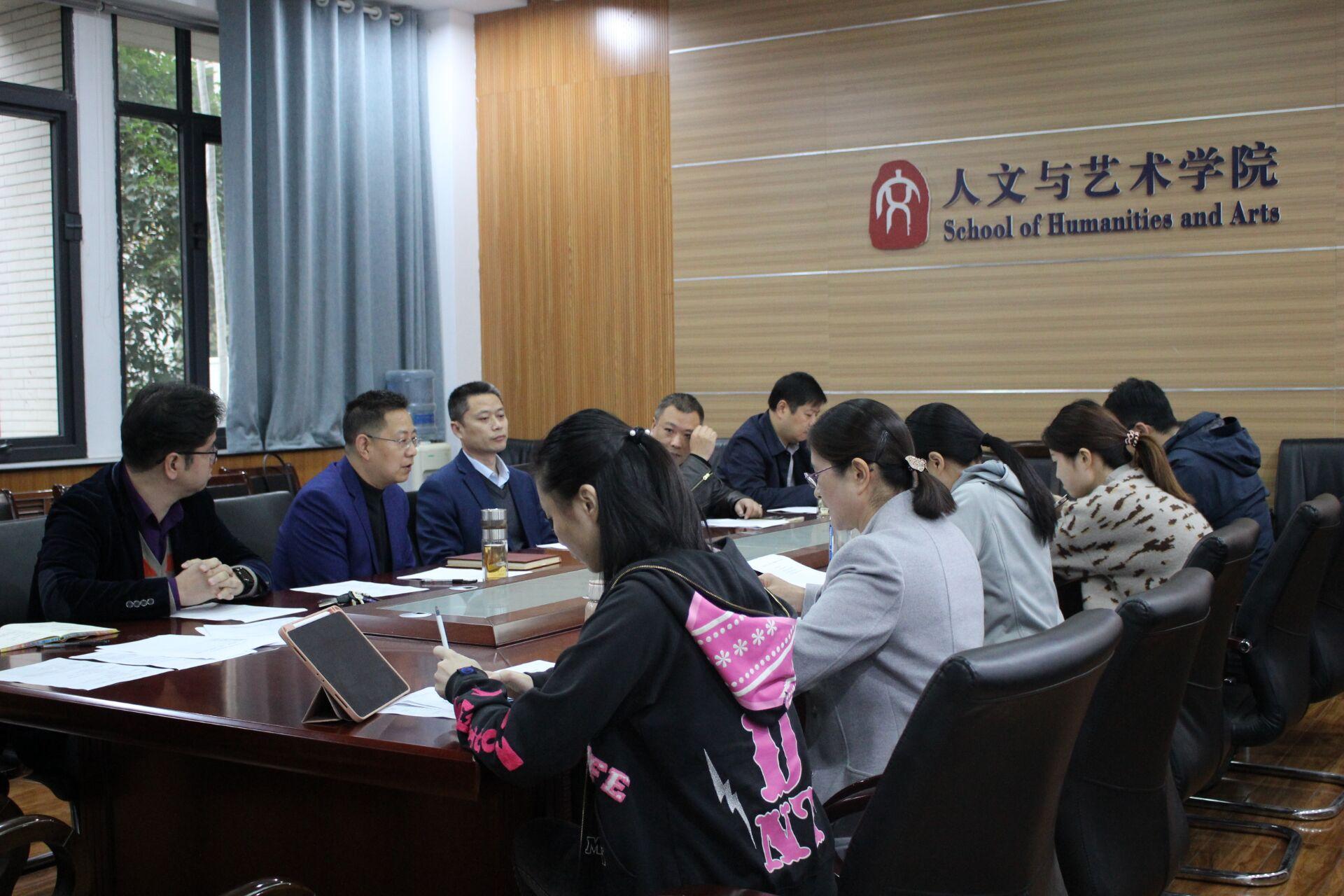 教学研讨会”,会议由五个内容组成,一是传达学校有关教材工作相关文件精神,布置学院教材有关工作;二是十四五期间各系教学发展研讨;三是下学期人文类公共选修课申报动员;四是针对2020版培养方案课程质量标准制定的研讨;五是布置2019-2020学年度教学材料自查工作。会议由教学副院长刘振主持,学院党委书记方跃平,院长史修永,中文系、法学系、广电系、音乐系、美术系主任参加了此次会议。