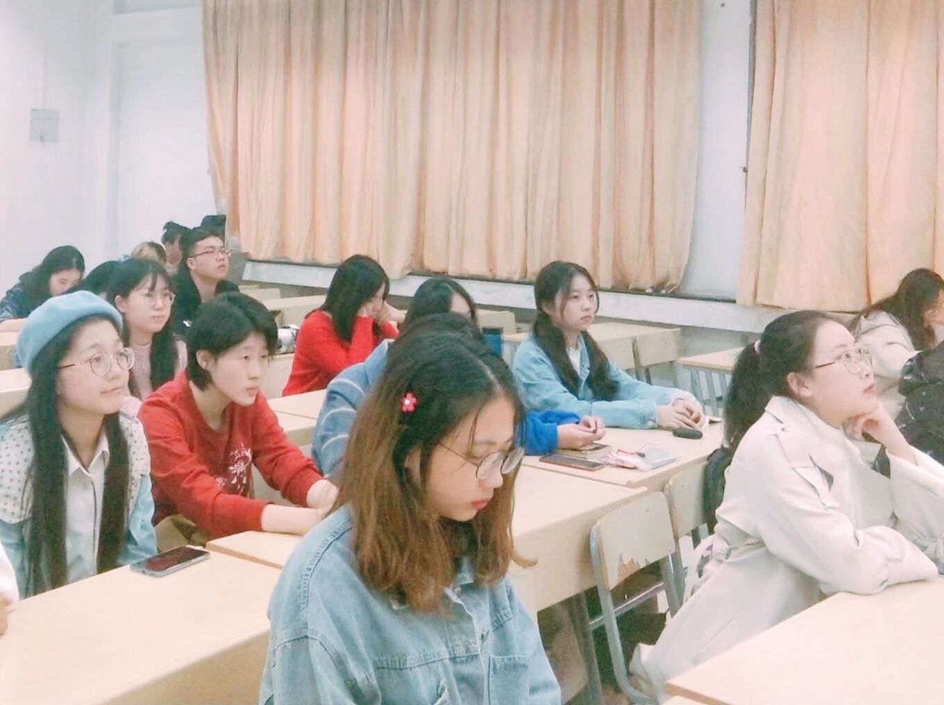同学们听团支书讲述五中全会精神