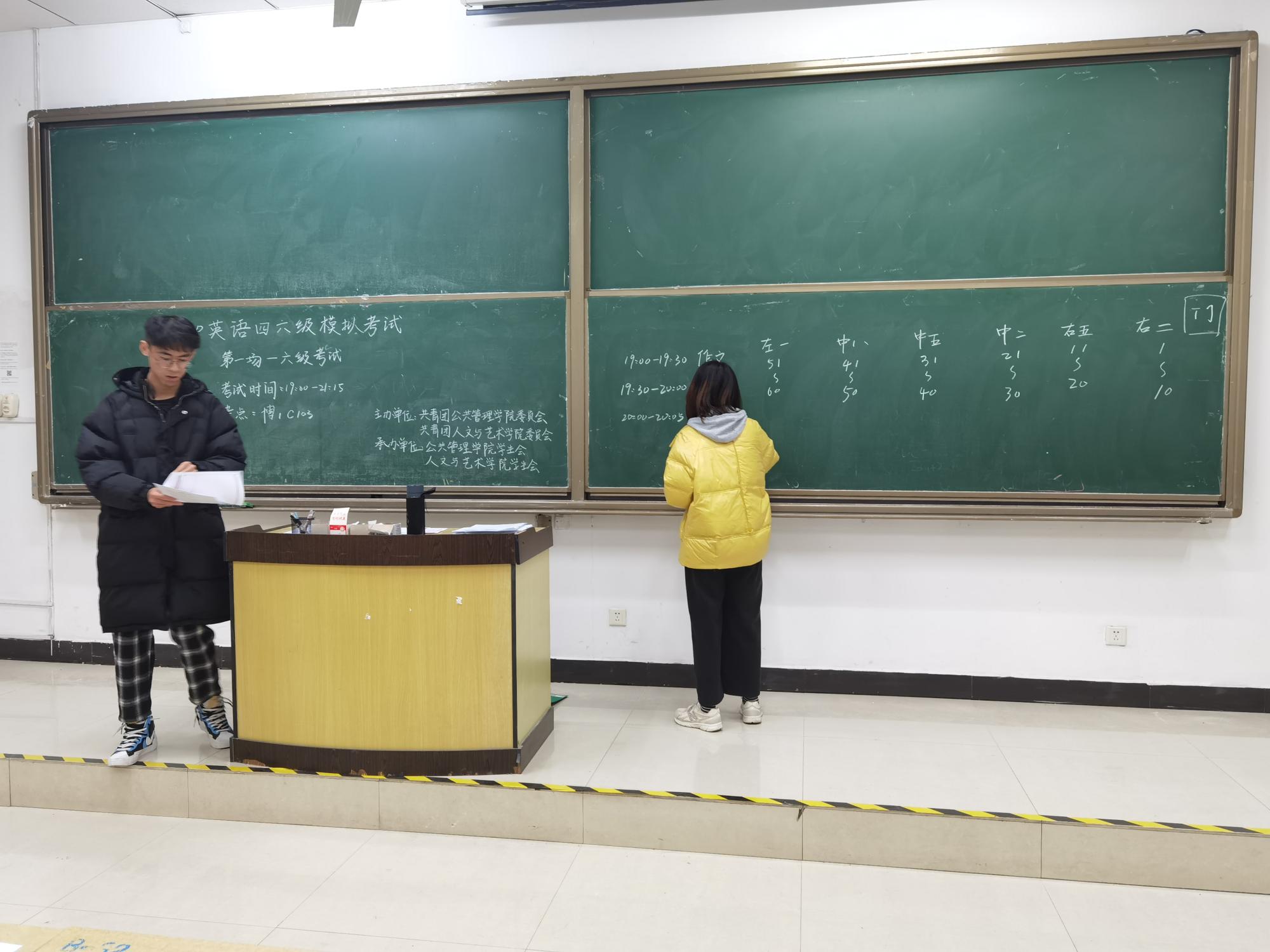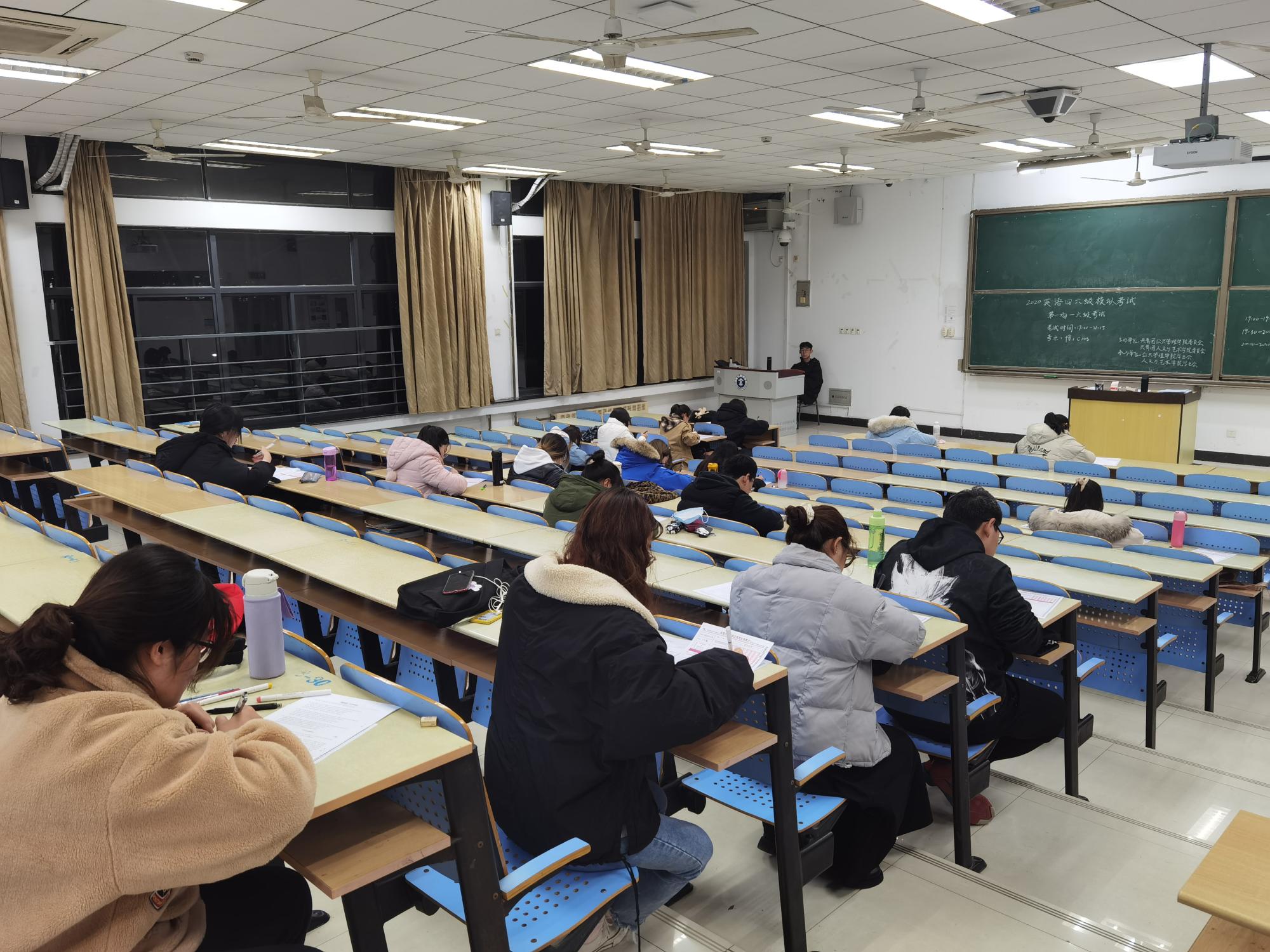 在博学楼1号楼举办英语四六级模拟考试。