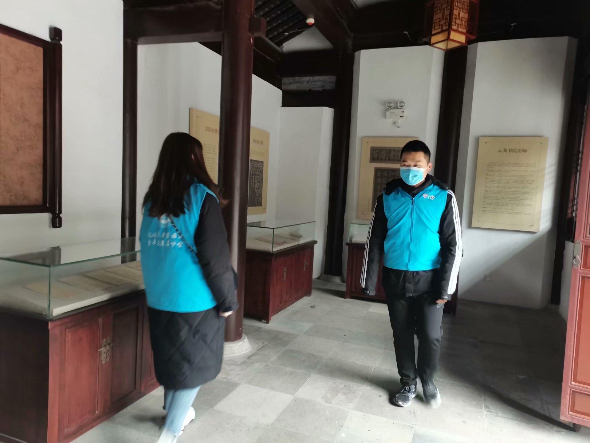 的学子来到云龙书院担任一名光荣的志愿者,协助云龙书院顺利举办线上讲座第58场,即云龙书院周末公益大讲堂总第378场讲座,由中国地理学会会员、铜山杨氏宗亲联谊会秘书长杨锟主讲的《杨映权和杨氏帖园的那些事》。讲座进行过程中,志愿者们不仅在书院各主要交通节点维持游客秩序,为游客指引方向,还在书院举办公益讲座时帮助提前进行现场布置和运作线上讲座设备,确保线上讲座正常进行。