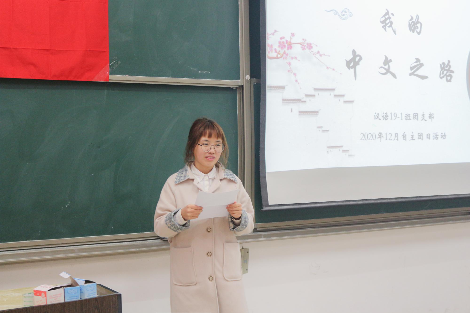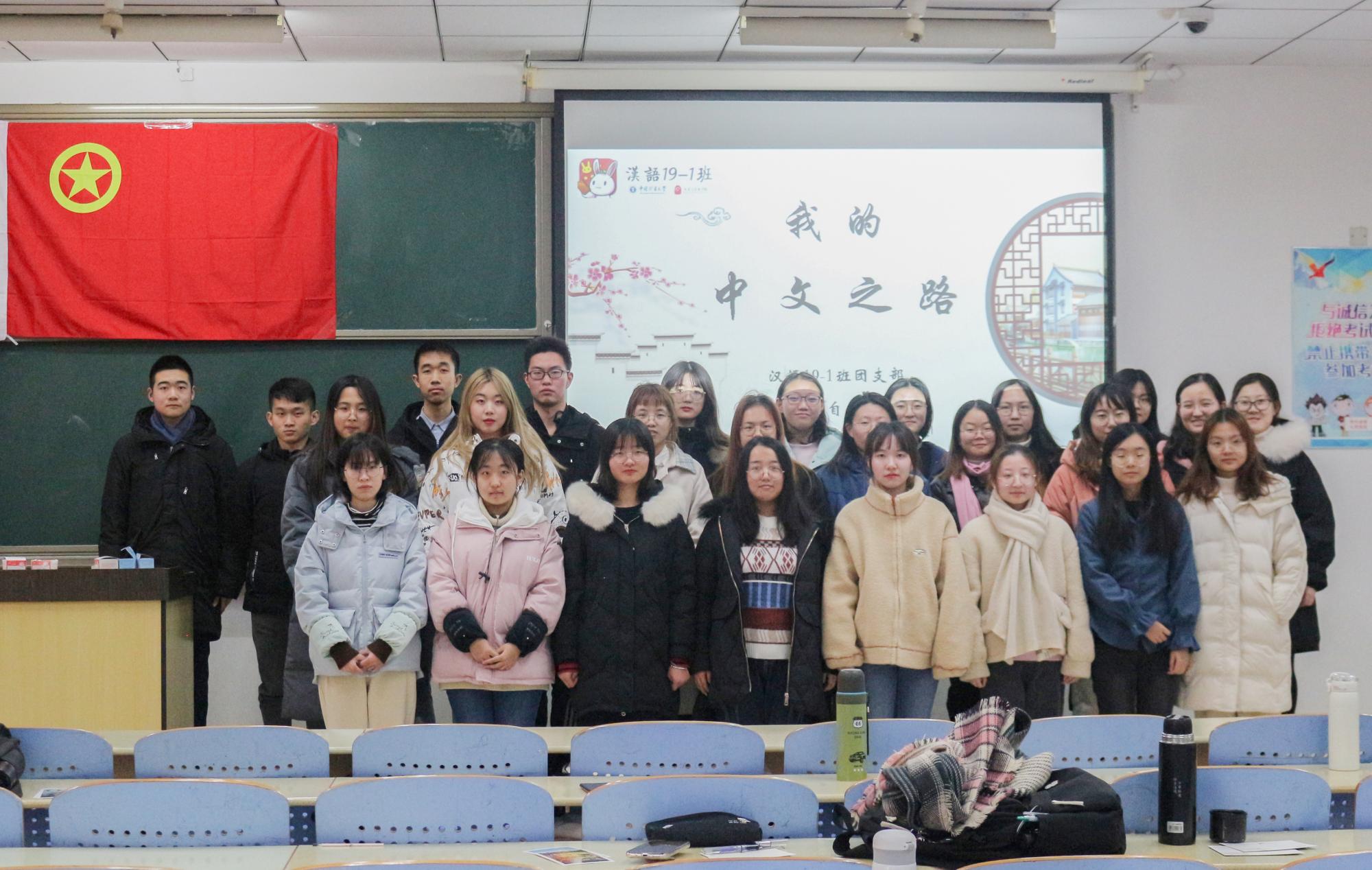 汉语言文学2019-1班团支部于博三B403开展“我的中文之路”自主团日活动。本次活动由团支书刘振乾主持,团支部全体成员到场参加。