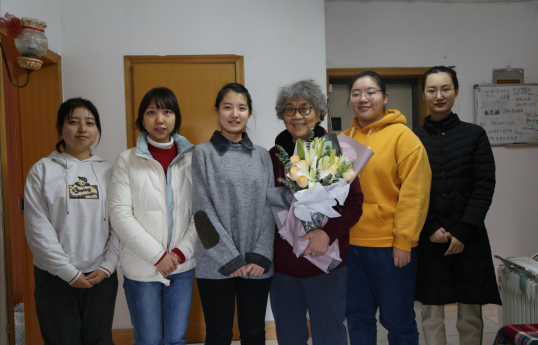 12月26日,广电2018级团支部派出代表,手捧鲜花,来到中文系创系元老、退休教师李启华家中,向她表达生日及新年的双重祝福。