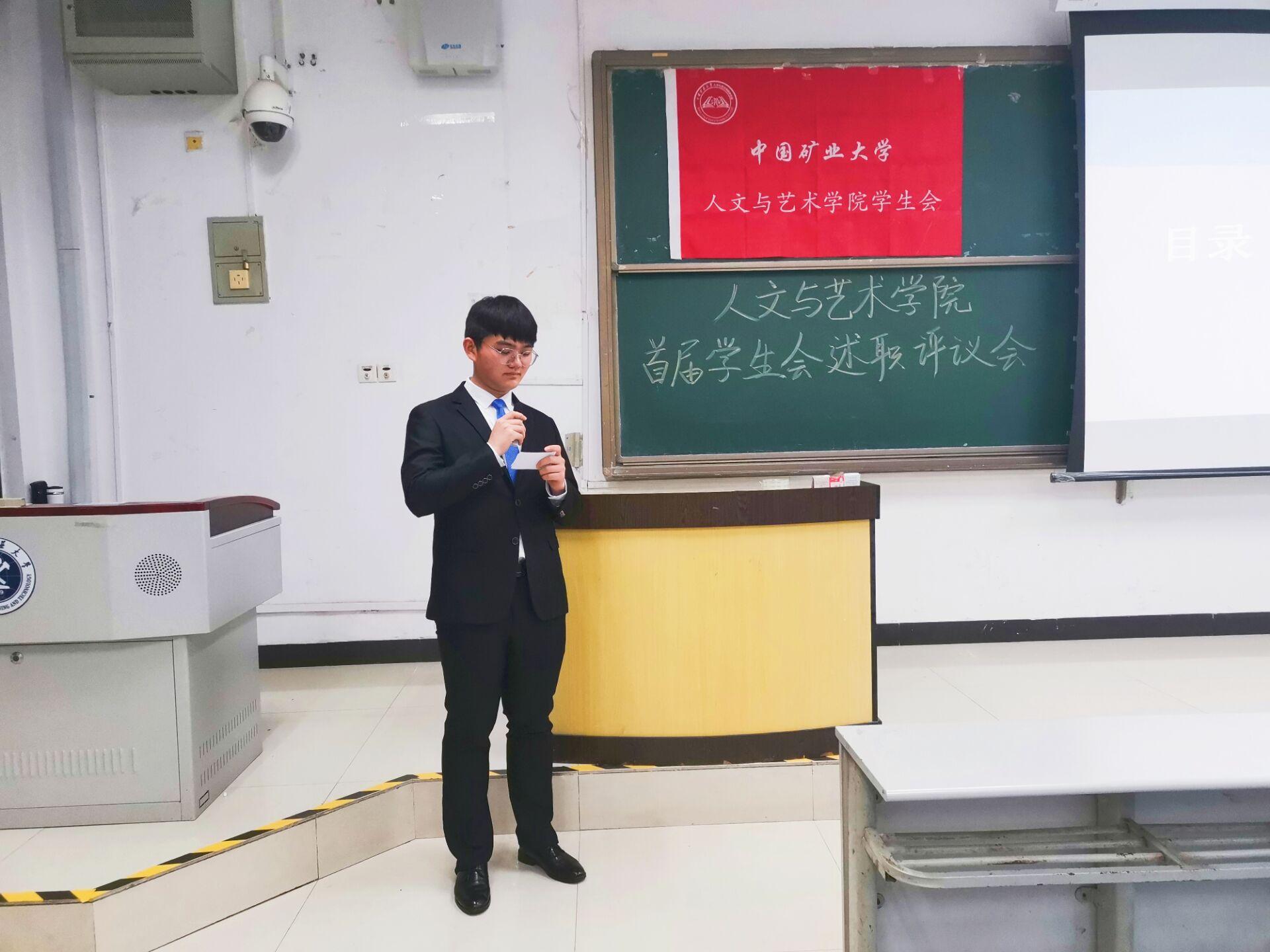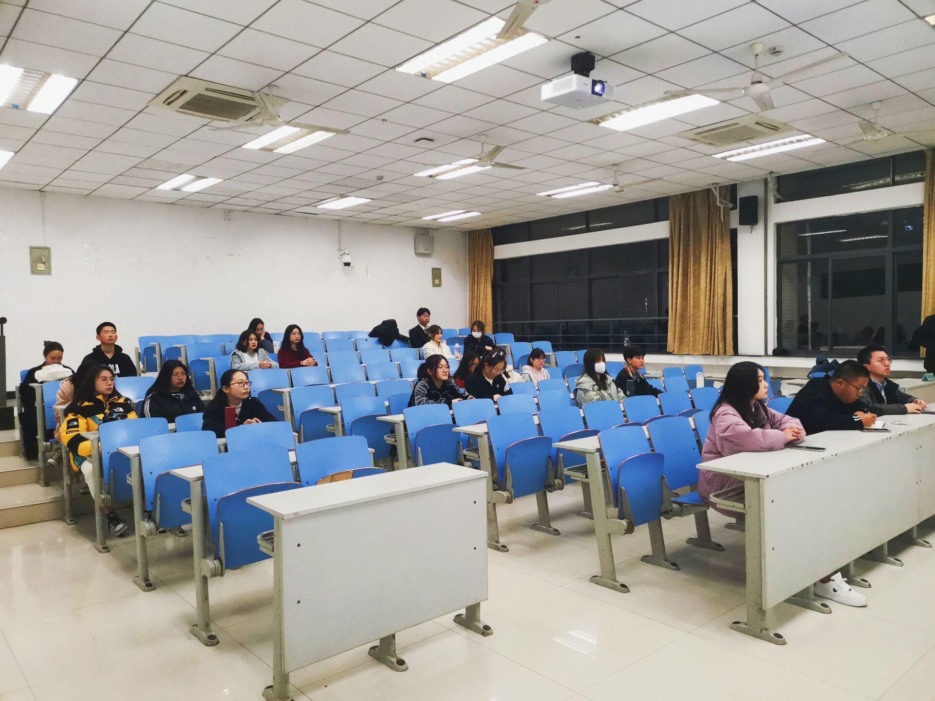 在博学楼一号楼B101举办首届学生会述职评议会,辅导员苏辉老师,主席团、部长团以及各部门干事出席了此次会议。