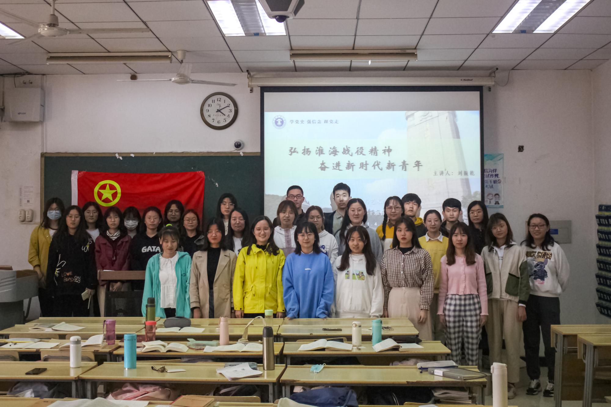 首先,团支书刘振乾告诉同学们今日的团课主题是“弘扬淮海战役精神,争做奋进的新时代新青年”。他向大家介绍,在以徐州为中心的广大地区打响的淮海战役是三大战役之一,更是决定中国命运的大决战。这也是在解放战争时期歼敌人数最多、政治影响最大的一场战役。