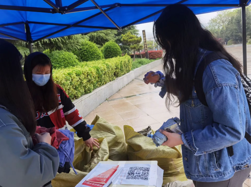 在活动中、后期,志愿者于4月6日晚在竹三、竹四进行扫楼宣传,向同学们讲解本次活动并邀请感兴趣的志愿者扫描二维码进群了解进一步的活动内容。4月10日、11日上午9时至12时、下午2时至5时于二食堂广场组织回收旧衣服,相关负责人值班并记录信息。活动结束后,负责活动的相关干事及时对活动进行总结,并进行后期宣传。