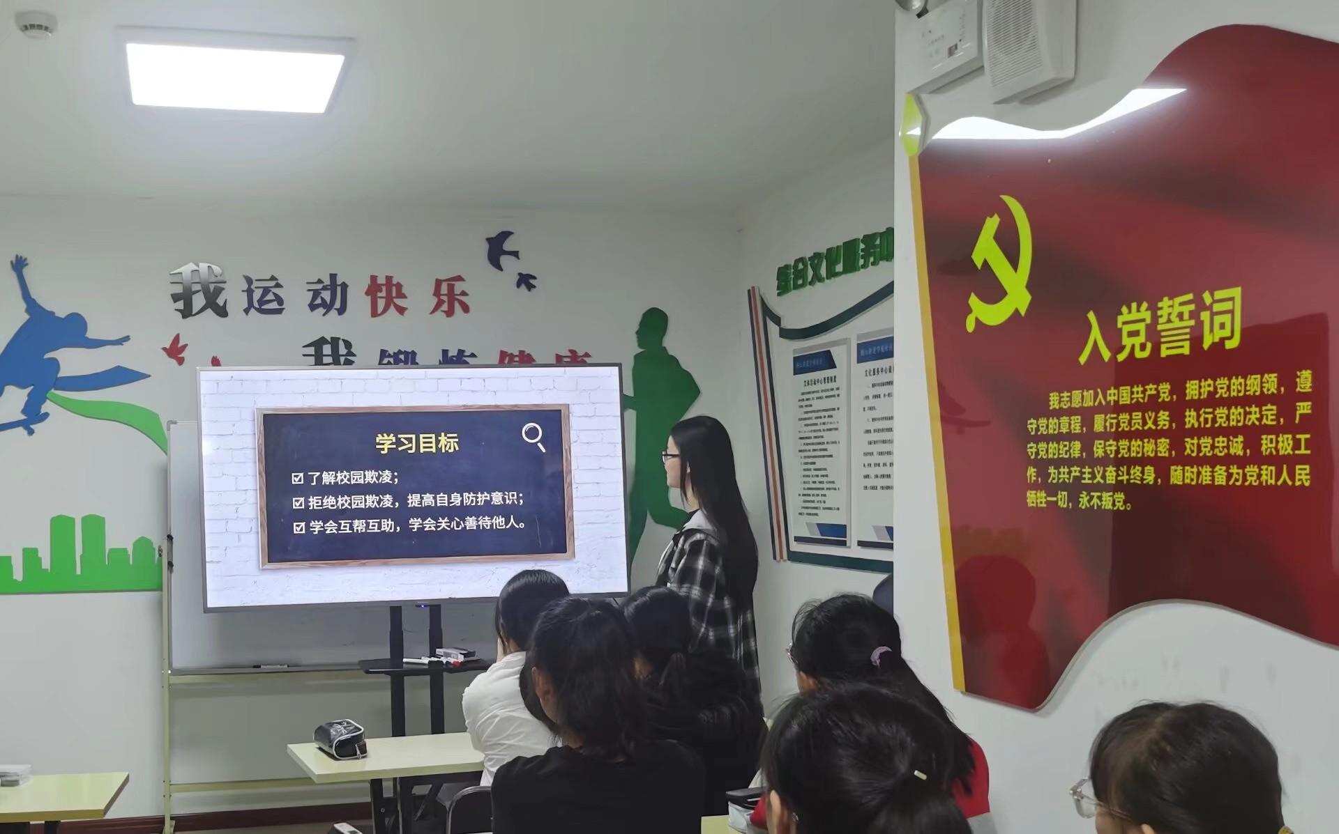 校园欺凌是发生在校园内外,学生之间,一方(个体或群体)蓄意或恶意通过肢体、语言及网络等手段实施欺负、侮辱,造成另一方(个体或群体)身体伤害、财产损失或精神损害等的行为。这种行为与我们所处的环境息息相关,很多青少年,年纪小,法律意识淡薄,又恰逢青春期,经常会成为校园欺凌的一员或成为被欺凌的对象。课上,实践成员们通过几个典型案例,让大家了解了校园欺凌,同时也向大家讲解了校园欺凌的解决方法。当受到欺凌时,最好不要害怕或哭泣,这会加剧欺辱者的欺辱行为。我们要勇敢、坚定而且明确地要求欺凌者停止他们的行为,同时,为了避开欺凌者最好和他人一起行动,及时向老师、家长及警察求助。当看见别的同学受到欺负时,也要向老师报告,不要视而不见,成为冷漠的旁观者。讲解过后,同学们表达了自己对校园欺凌的看法与认识。