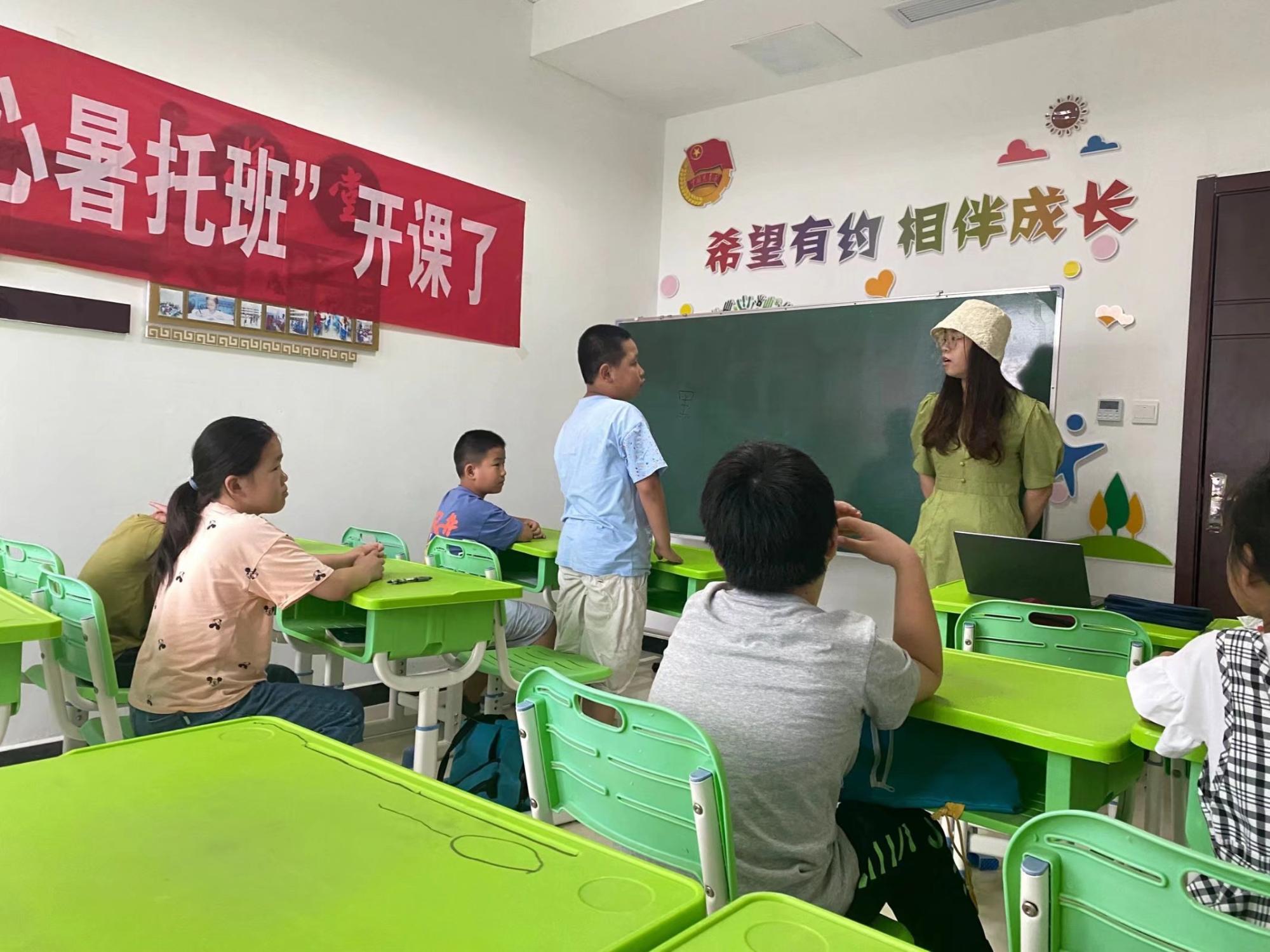 下午的课程主题是心理健康。首先是通过简单的颜色测试小游戏了解四种基本的心理性格特征,并进一步了解心理健康对于成长的重要性。孩子们认真听课,有感而发,各自分享了一些成长的小烦恼以及解决的有效方法。最后一节课是课业辅导,每个孩子都在小组成员的建议下制定了暑假作业的计划表,大家按计划完成今日的作业,小组成员帮助他们检查作业的完成情况,指出错题并讲解正确解法,整体学习氛围融洽认真。