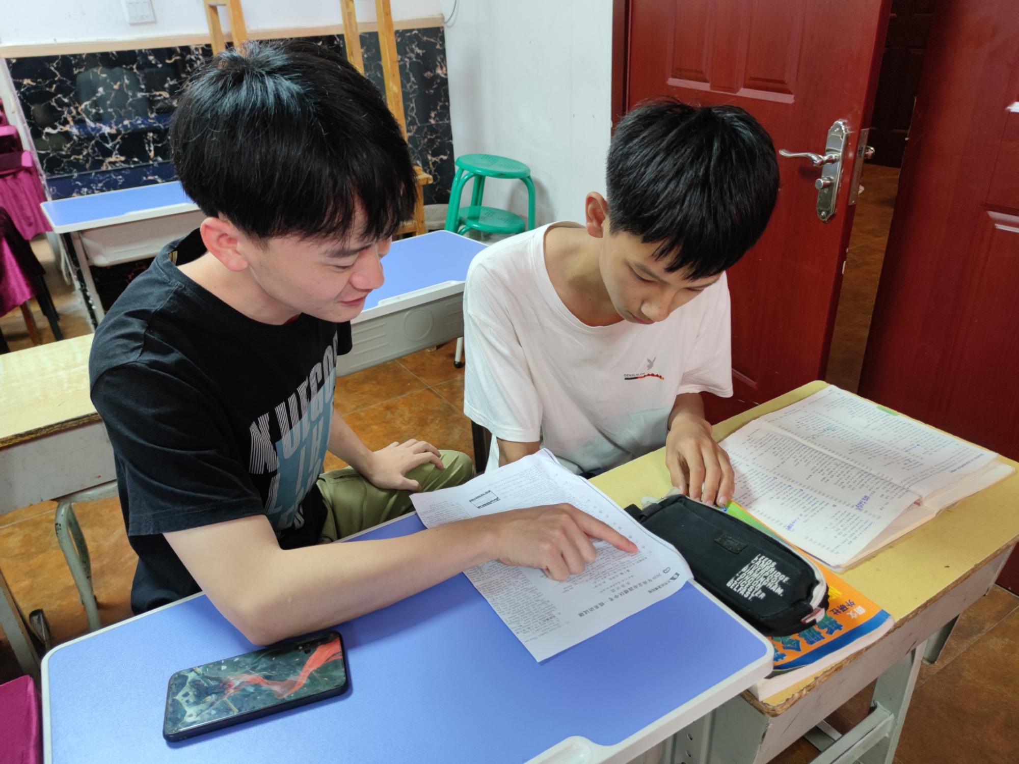 青年志愿者协会暑期实践铜山街道团队成员于徐州市铜山区学苑社区党建服务中心展开展开暑期作业辅导。此次作业辅导针对的群体是初中学生,这次的作业辅导的主要目的是处理学生在这一学期的英语学习中存在的短板以及没有及时解决的学习问题。