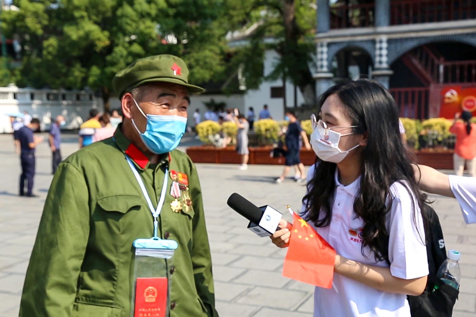 在遵义会议会址采访退伍老兵