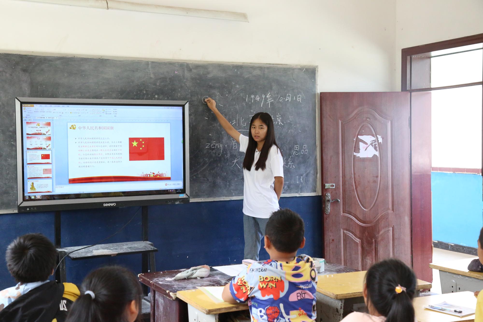 7月30日,实践团队前往遵义市习水县东皇坭井小学开展社会实践活动。团队成员深入课堂开展了丰富多彩的教学活动:讲授成语故事、讲解汉字书写、纠正普通话发音、开展红色诗歌朗诵比赛和趣味运动会,带领学生们全面健康发展。之后,团队成员为学生们分发了笔记本、铅笔、糖果等礼物,鼓励学生们努力学习文化知识,传承红色精神。放学后,团队成员护送学生们回家并进行了家访。在与多位学生家长的访谈中,团队深入调查了普通话及红色文化的推广宣传情况,了解了当地的生活环境,认识到精准扶贫对农村生活的改善。通过课堂教学以及家访,团队为推广普通话及红色文化尽己所能,并深刻认识到这一任务的价值所在。“黔皖筑梦红色之旅,推普助力乡村振兴 ”实践团队立足基层,推广普通话,传承红色文化,以带动更多青年人担负起新时代赋予的责任,为乡村振兴战略注入新鲜血液。