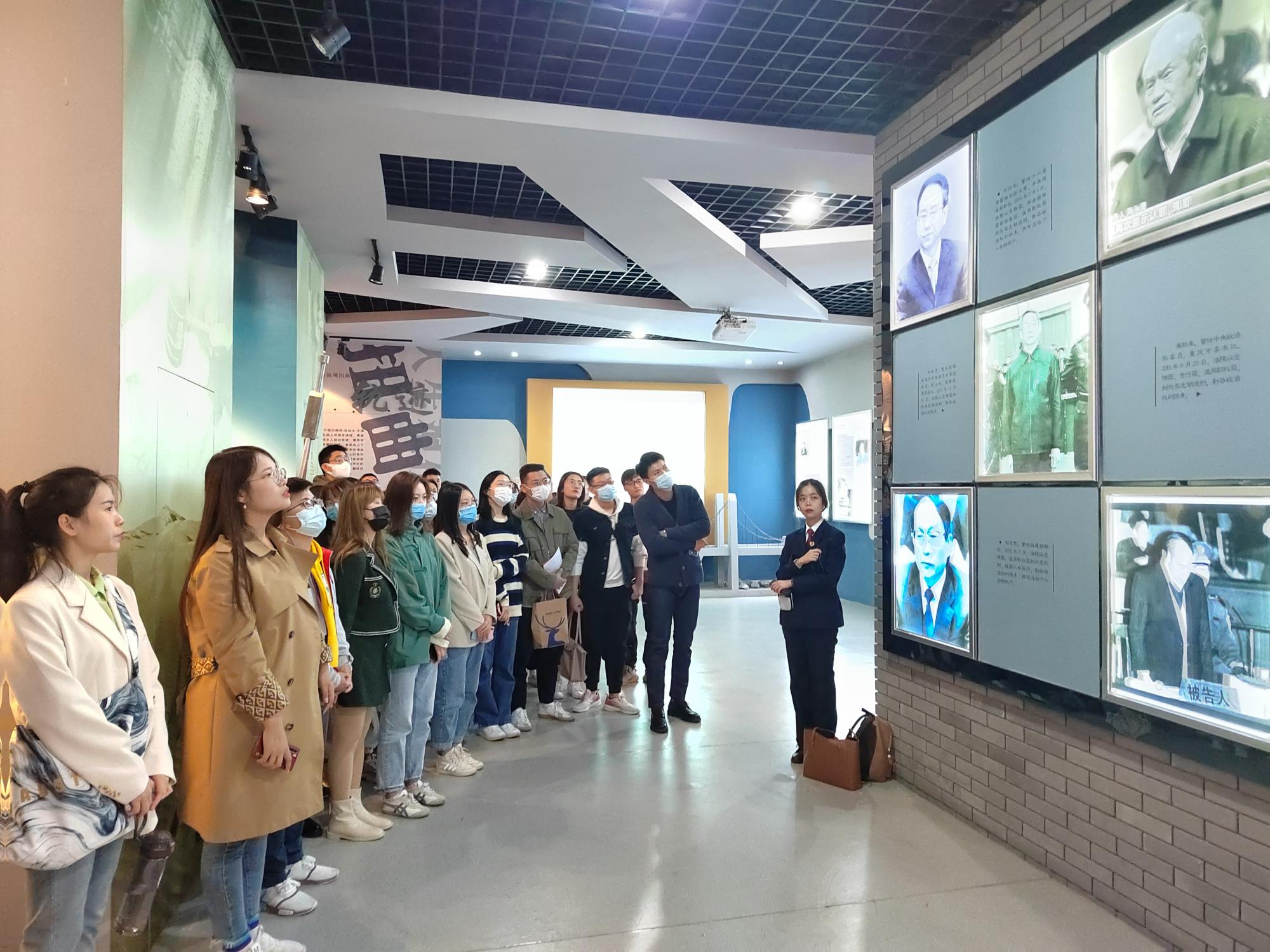 下午2点30分,同学们准时来到鼓楼区人民检察院的廉政教育实践基地,接受廉洁警示教育。该展览中心由“不忘初心、牢记使命”主题教育、典型案例、鼓楼清风三个展厅组成,多媒体视频与图片文字讲解相结合,生动讲述了腐败现象、腐败问题和腐败的危害。在“不忘初心、牢记使命”主题教育展厅,同学们重温了习近平总书记在各大会议上的重要讲话,深刻理解了“守初心、担使命、找差距、抓落实”的总要求。在基地讲解员的带领下,同学们在典型案例展区观看了一系列反腐警示教育片,分析观看了周永康、令计划、徐才厚等腐败分子的贪腐案例。随后,同学们仔细阅读学习墙面上的警示教育展板。展板上展示了近些年来江苏地区的腐败案例,涉及贪污、受贿、利用职务之便谋取私利、生活作风腐化堕落等问题。每一个案例都发人深省,警醒着参观展览的每一个同学,要以史为鉴、做到廉洁自律,要遵规守纪,廉洁一生、幸福一生。