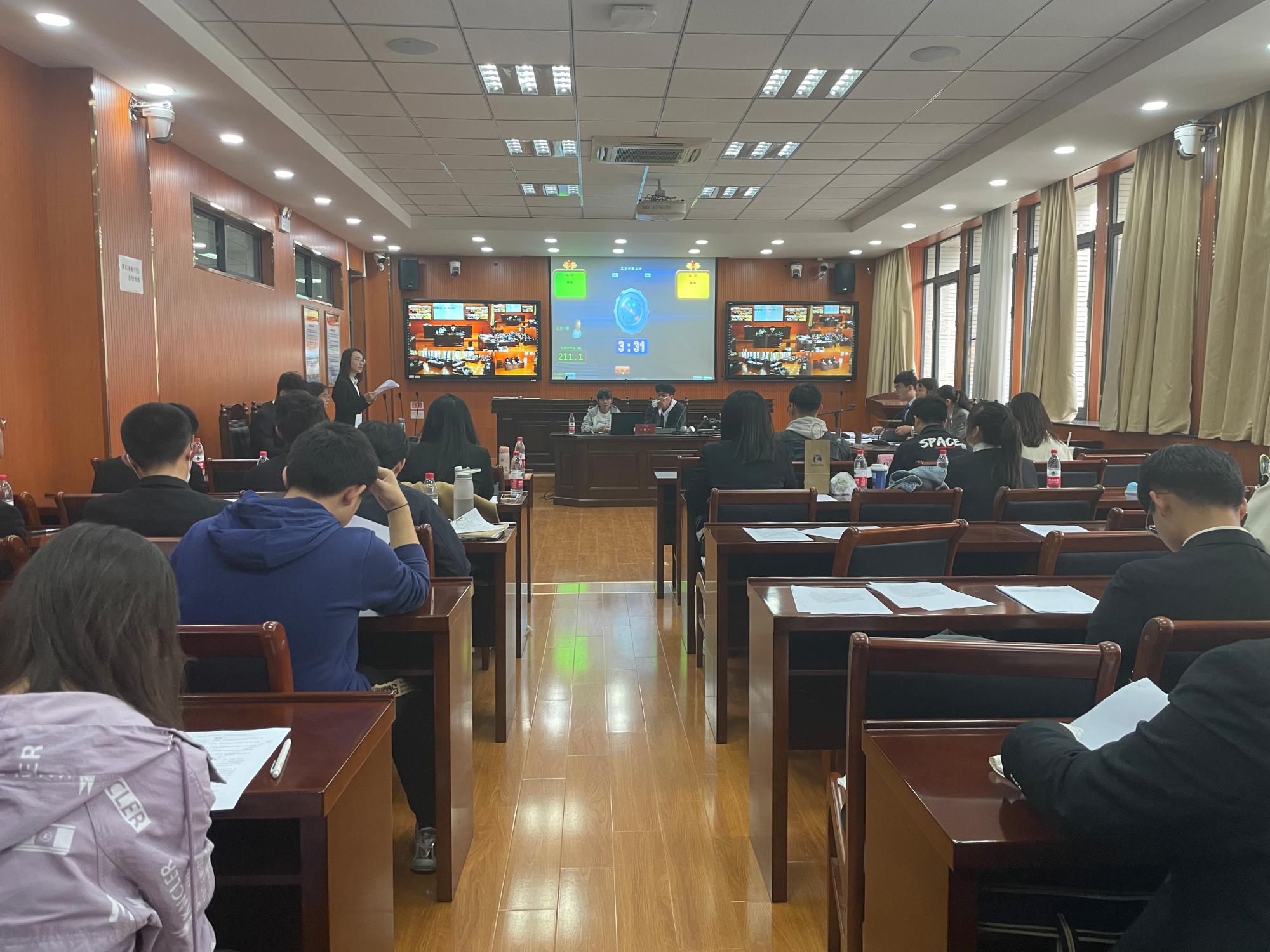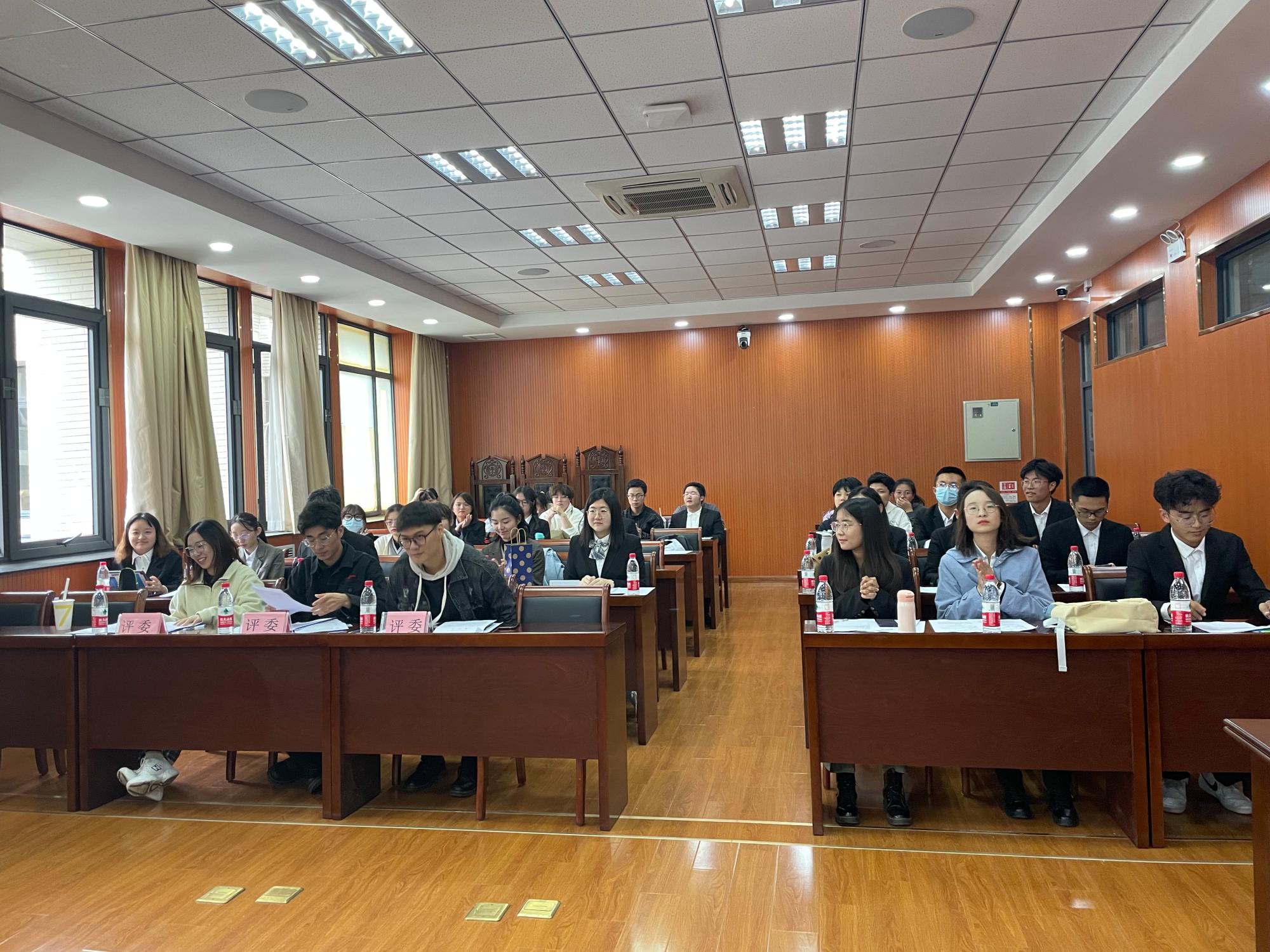 本次活动采用新的组织形式——比赛双方于辩题所确定的事实基础上进行法律辩论,模拟审判程序。比赛设置三个案例,每个案例分为原告/公诉人和被告两方,双方事先各自进行讨论,需要拟定书状、准备相关辩论问题。活动伊始,主持人向大家介绍了本次活动的指导思想,指出作为中国特色社会主义新时代下的大学生,学习法律相关知识,做一名懂法律、会法律、讲法律、用法律的新青年是时代赋予的责任。随后,法学一、二、三班的辩手队伍针对各自的辩题进行了充分的沟通与研讨,各位评委从法理角度对辩题进行了精确的分析、从辩论技巧方面对选手们的表现做了精准的点评。最后,经过激烈的角逐,得出比赛结果,在场嘉宾为获奖团队及选手颁发荣誉证书,全体参赛选手和评委在模拟法庭合影留念,辩论赛顺利结束。