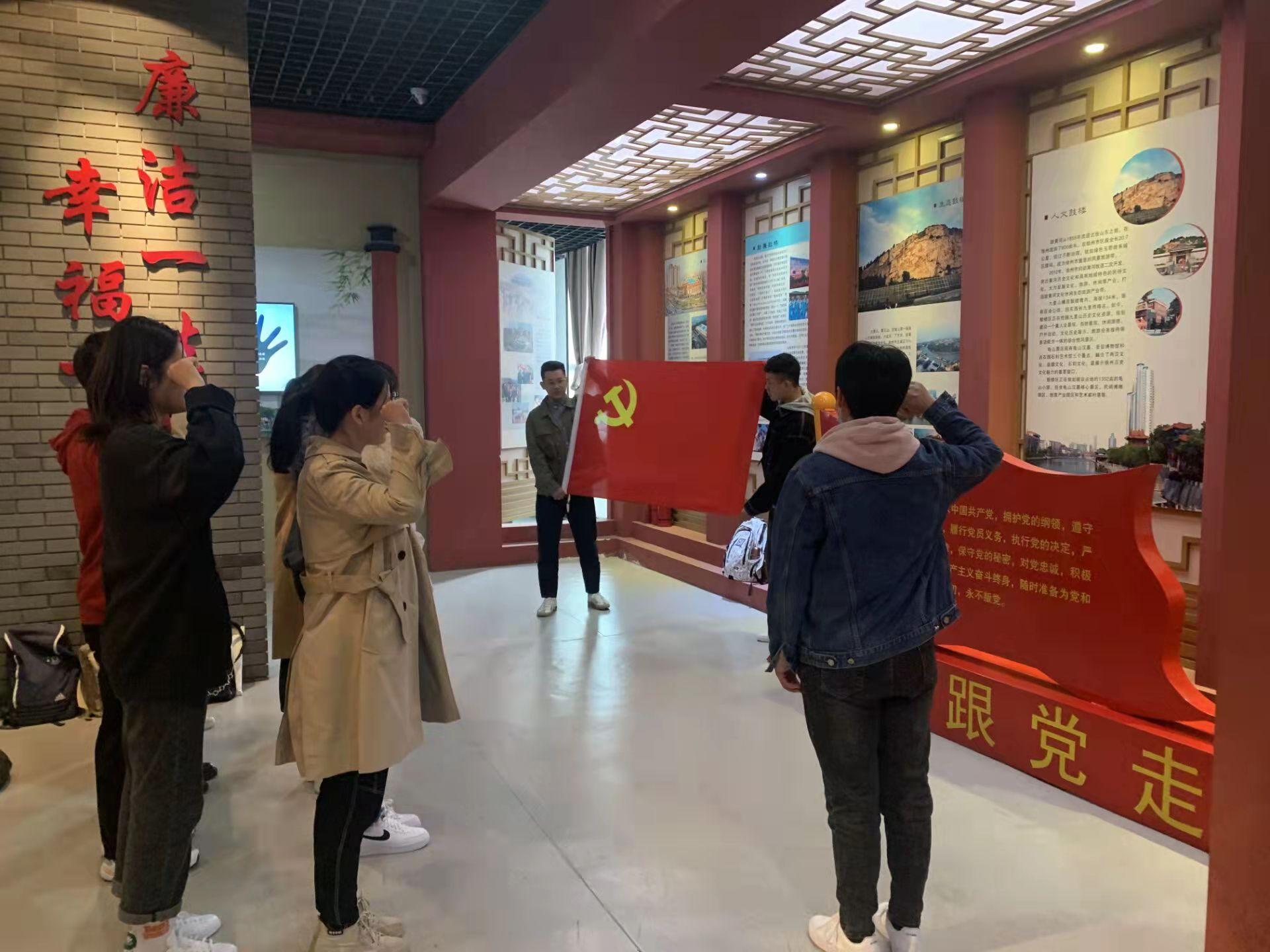 下午3点30分,党支部全体成员来到鼓楼区廉政教育实践基地参观警示教育展览。在不忘初心、牢记使命展厅,同志们重温了习近平总书记在各大会议上的重要讲话,深刻理解了“守初心、担使命、找差距、抓落实”的总要求。同志们在基地领导员的带领下,在典型案例展区观看了一系列反腐警示教育片。随后,同志们仔细阅读学习了墙面上的警示教育展板。展板上展示了近些年来江苏地区的腐败案例,每一个案例都发人深省,警醒着参观展览的每一位同志,要以史为鉴,做到廉洁自律,遵规守纪,只有廉洁一生,才能幸福一生。最后,全体党员同志站在庄严的党旗前,重温入党誓词,坚定入党初心。