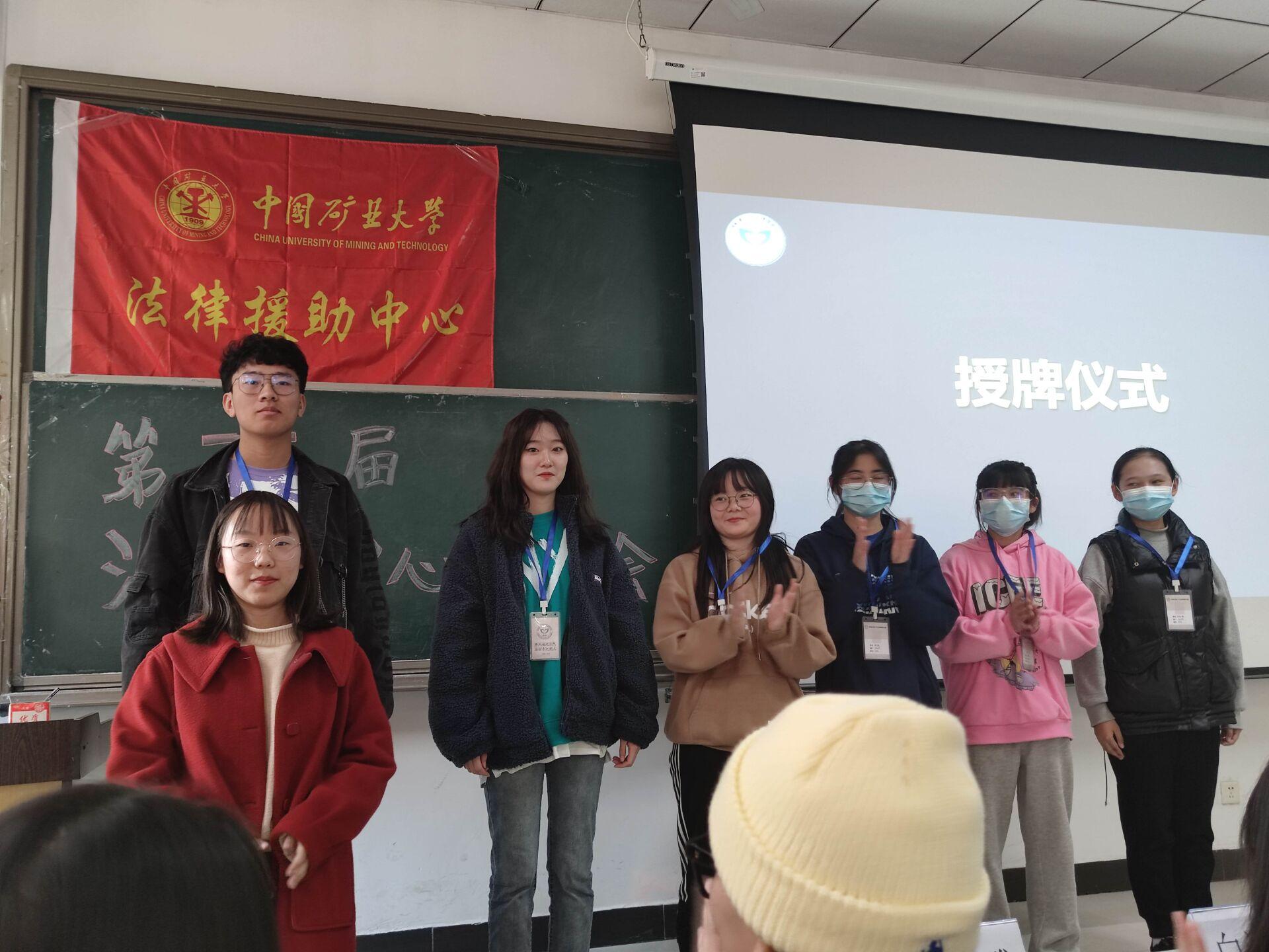 法律援助中心的发展历史,号召法援人用知识和热情为弱势群体提供法律援助,做到“养天地正气,法古今完人”。随后,进入本次活动主要环节,各部部长及辩论队队长介绍本部成员,各部部员进行自我介绍,并举行授牌仪式。最后,全体参会人员在见面会现场合影留念,见面会圆满结束。