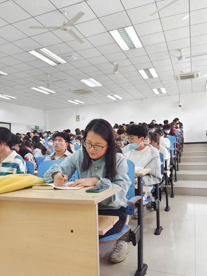 李玉雪老师则以大学生涯规划为主题与同学们进行了交流。她首先对上学期大家的表现进行了肯定,从德、智、体、美、劳五个方面呈现“可圈可点的我们”。然后强调树立个人发展目标的重要性,她借用毕业校友及她本人亲身经历为同学们讲解了目标在资源整合、动力维持方面的作用。接着她指出同学们应尽早从“考研、考公、企业就业”三个方面明确个人发展路径,借助生涯导师和朋辈督促力量,充实过好大学生活。最后,她强调运动和读书的重要性,号召同学们健康体魄,涵养精神。