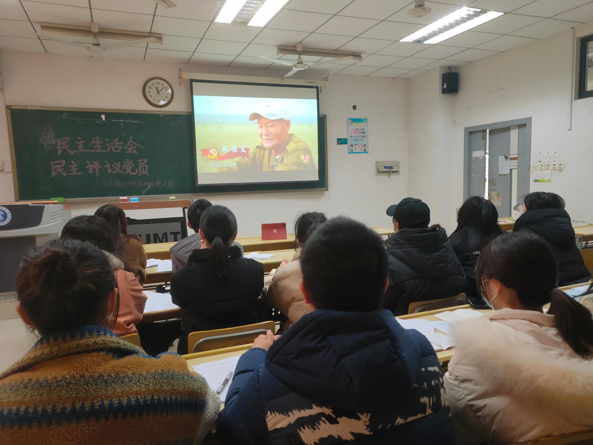 首先,会议对四名正式党员进行民主评议。其次,党支部全体成员学习《党章》总纲、第一章,《中国共产党普通高等学校基层组织工作条例》第二、三、五章,范丽洁对相关问题进行提问。范丽洁强调,身为党员,应该有更扎实的理论基础,应该更注意全面发展,真心实意践行全心全意为人民服务的宗旨。这段讲话在如何体现党员先进性问题上引发全体党员、预备党员的深刻反思。此外,范丽洁分享了个人经历,提醒全体成员努力学习,提高能力,看到自己的不足,不计个人得失,克服利己主义思想。随后,党支部全体成员观看《榜样6》,学习祁发宝、魏德友、张桂梅等“七一勋章”获得者和全国“两优一先”表彰对象的先进事迹,支部成员畅谈感悟,反省自身。刘艳萍表示,学习了先进党员身上那股身为党员永守初心的责任精神后,更觉得应该以青年人的朝气、锐气和勇气积极投身于自我奉献当中,以小我成就大我。何佳燊表示,通过本次活动,对中国共产党有了更加深刻的认知,也更加觉得前方任重而道远,自己将会反思不足,查缺补漏,面向未来。