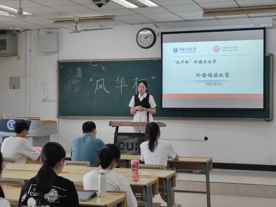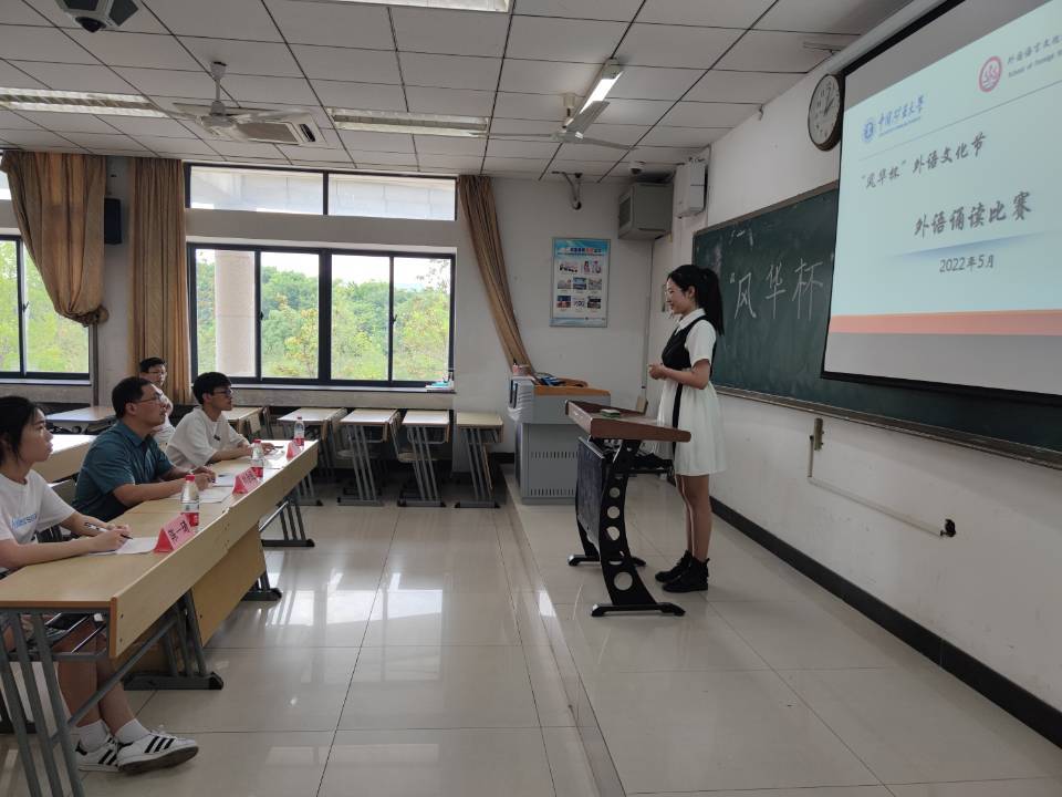 官方账号进行宣传。同学们通过扫描宣传海报上二维码的方式加入活动群内报名参赛。5月25日下午14至17时,比赛正式于文科楼B508举行。参赛选手们用英语或德语背诵一篇300词左右的作品,其中包括名作节选、名人演讲、红色经典等。最终,评委们依据给定的评分标准,对参赛选手的表现进行评分,评选出前30%的获奖选手。