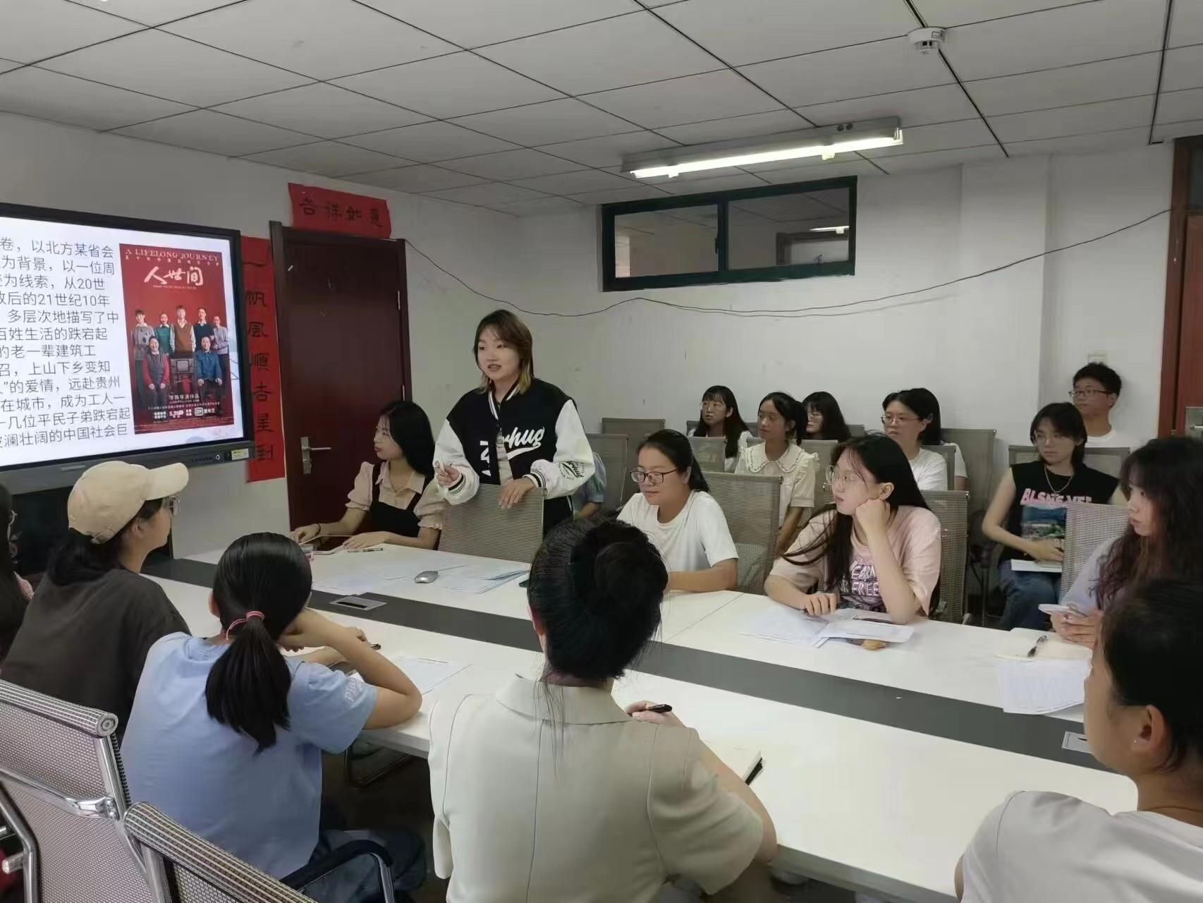 此次读书会为“我与班级共读书”第二期活动,围绕梁晓声《人世间》一书展开。首先,王姣蕊同学向大家介绍了本书大致内容,分享了自身读书心得,并以一段小视频带领大家迅速走进书中世界,随后,她邀请同学们就“最喜欢的人物”“印象最深刻的情节”两个话题先后展开交流。在王姣蕊同学的带动下,大家积极发言,畅谈对人物形象的分析与对情节的感受。