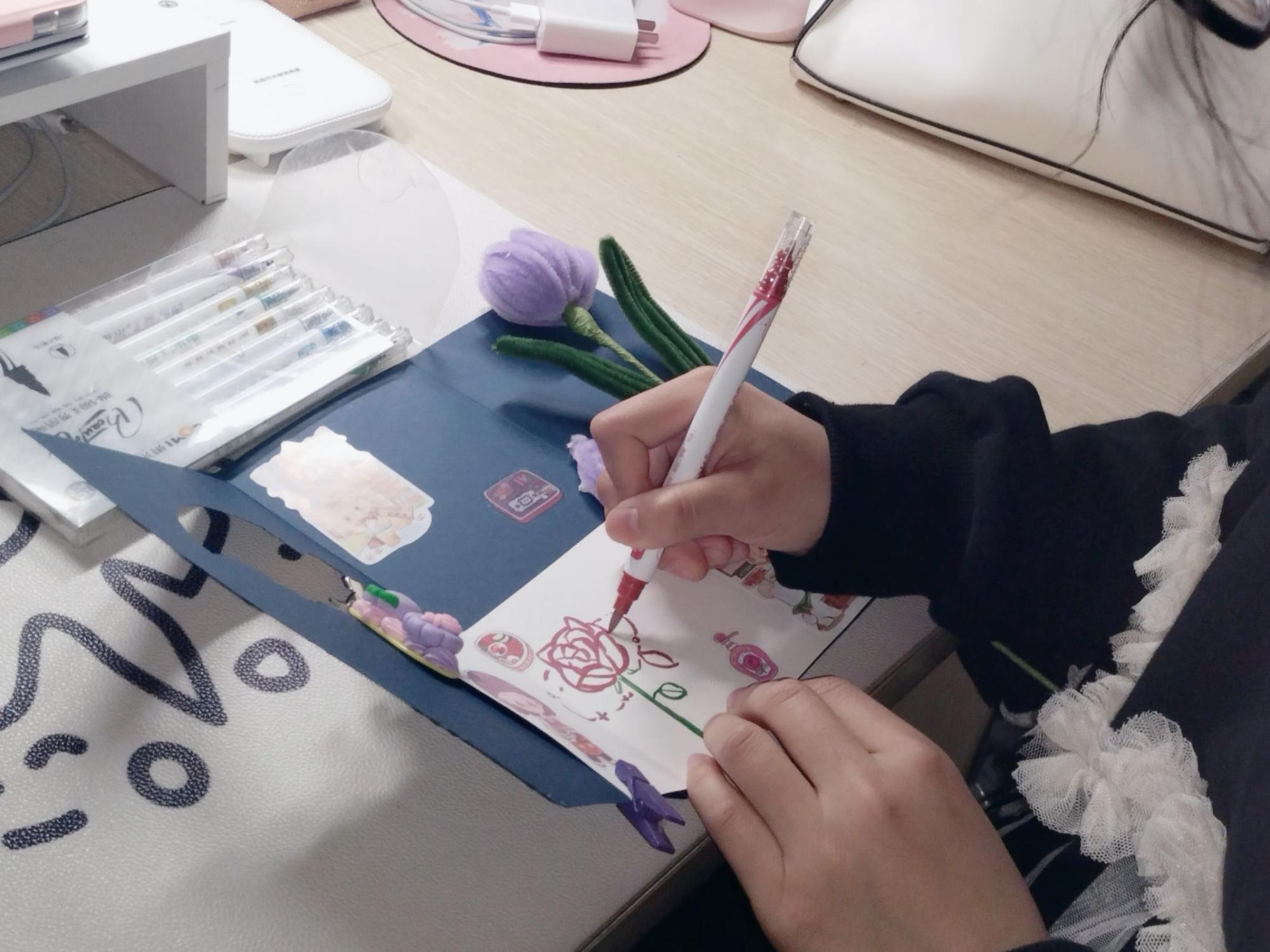 青年志愿者协会开展了“绘心传情,致敬最美的她”活动,组织同学们积极参与制作手工贺卡。