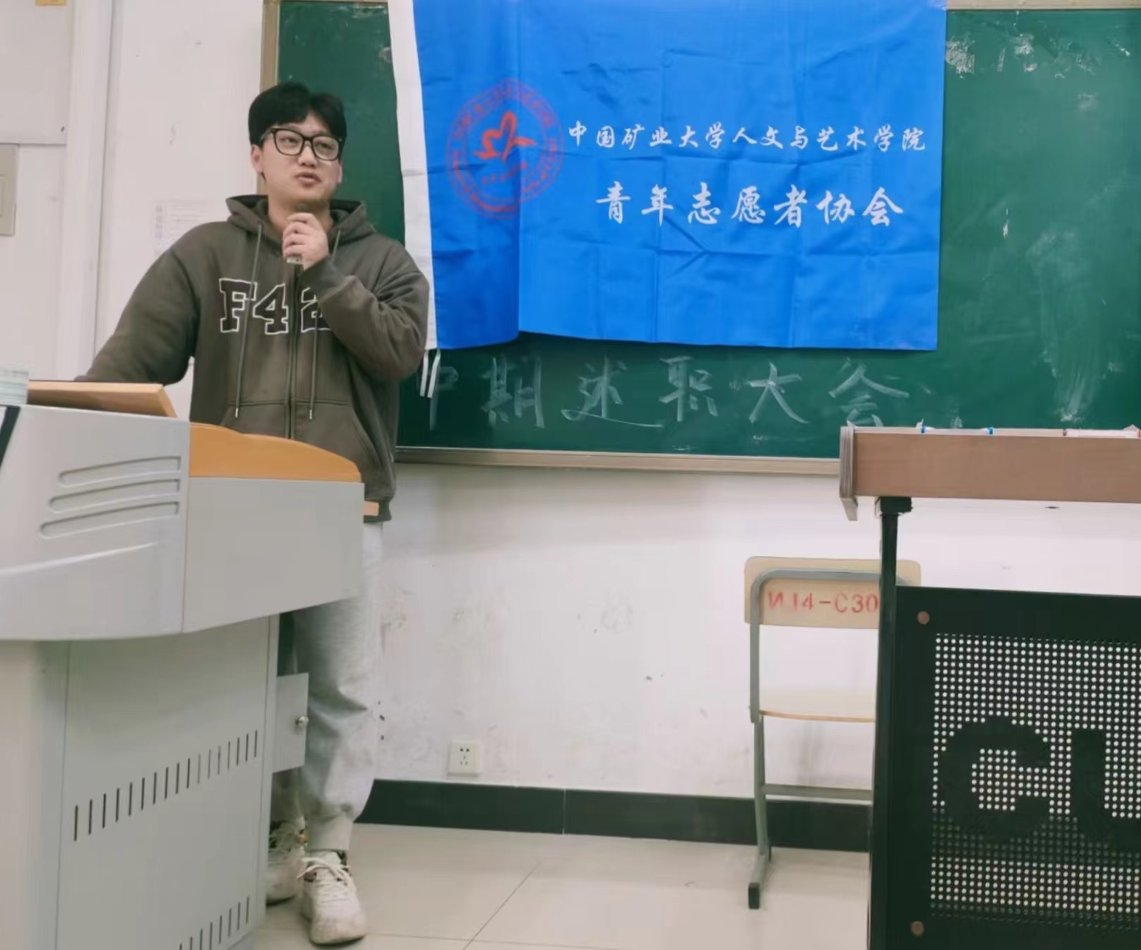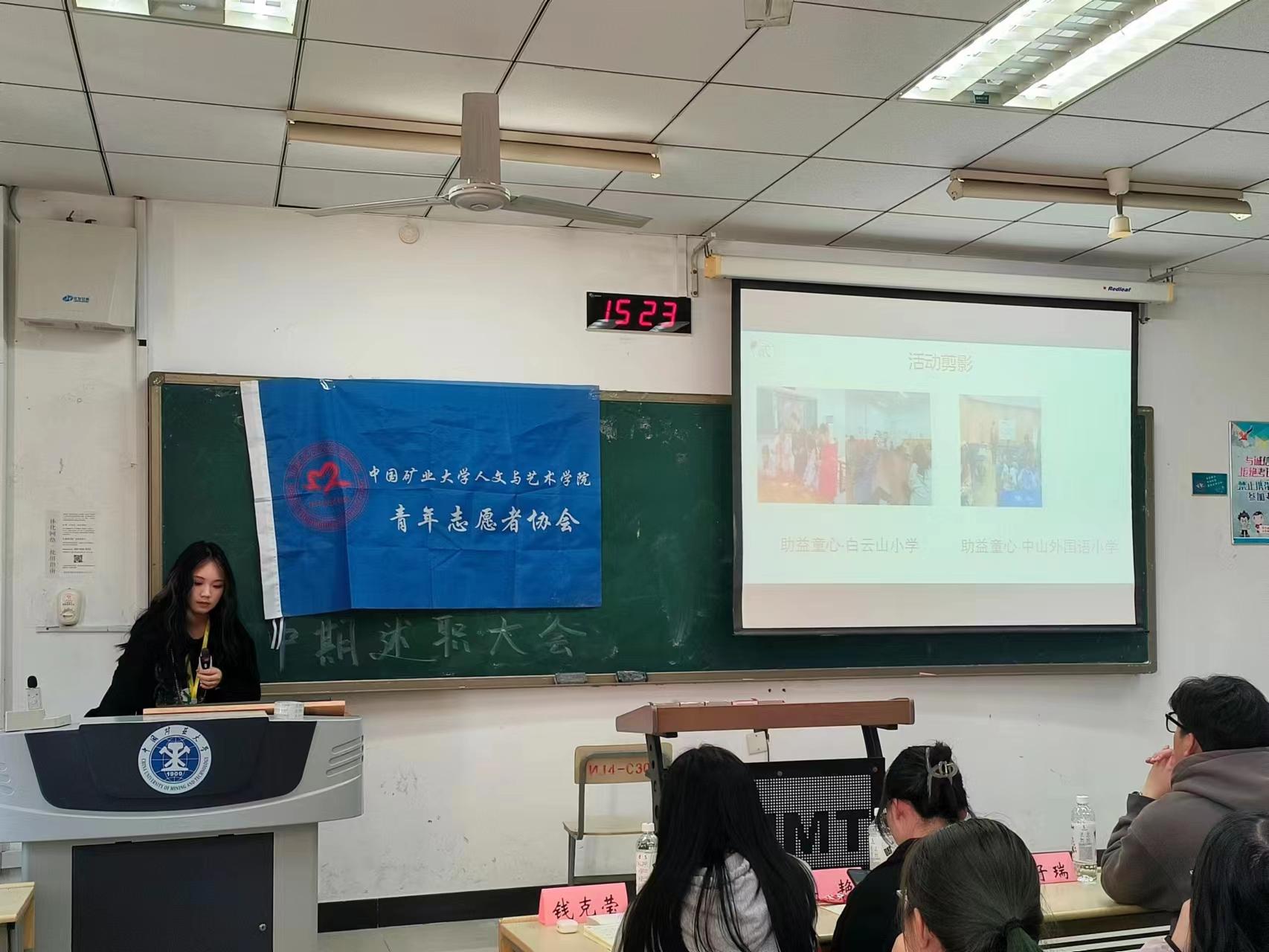 青年志愿者协会于博四C302召开中期述职大会。指导老师丁子瑞出席会议,主席团、部长团成员及各部门干事参会,会议由部长唐琪主持。
