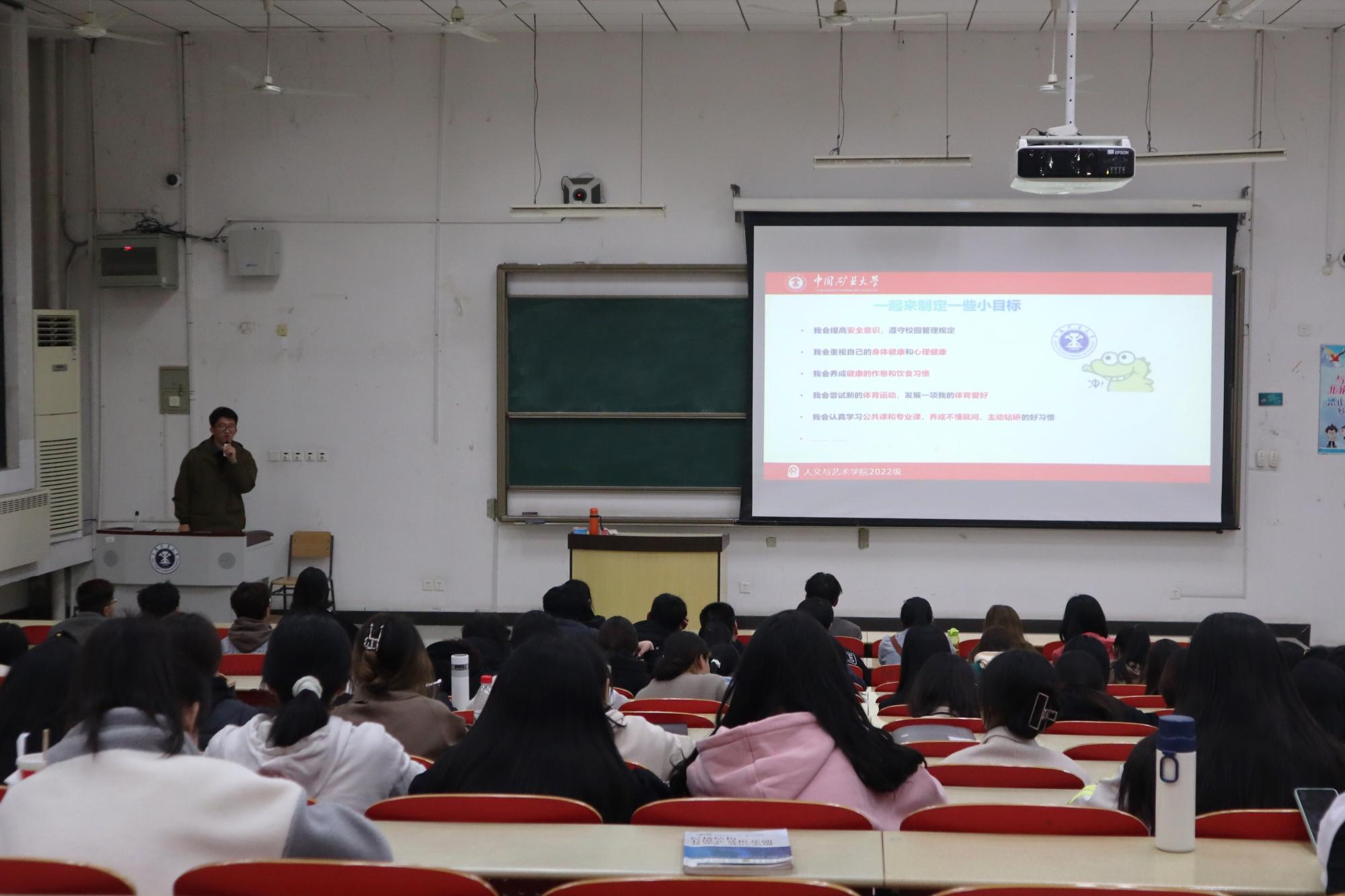 同时,张瑞亭老师介绍了学院将围绕党的二十大开展一系列活动,希望同学们积极学习党的二十大精神,深刻领会和准确把握大会的精神实质,进一步增强学习的主动性和积极性。张瑞亭老师对学风建设提出要求,他肯定了各班级上学期流动红旗评选中的成绩,鼓励同学们在本学期的学习生活中继续努力,以优良的学风促成更好的学习效率和学习成果。结合2022级学生们的学习现状,他详细介绍了各专业评奖评优、考研、出国留学、就业等相关情况,他希望同学们明确目标、脚踏实地,在本科毕业后都能有理想的生活。