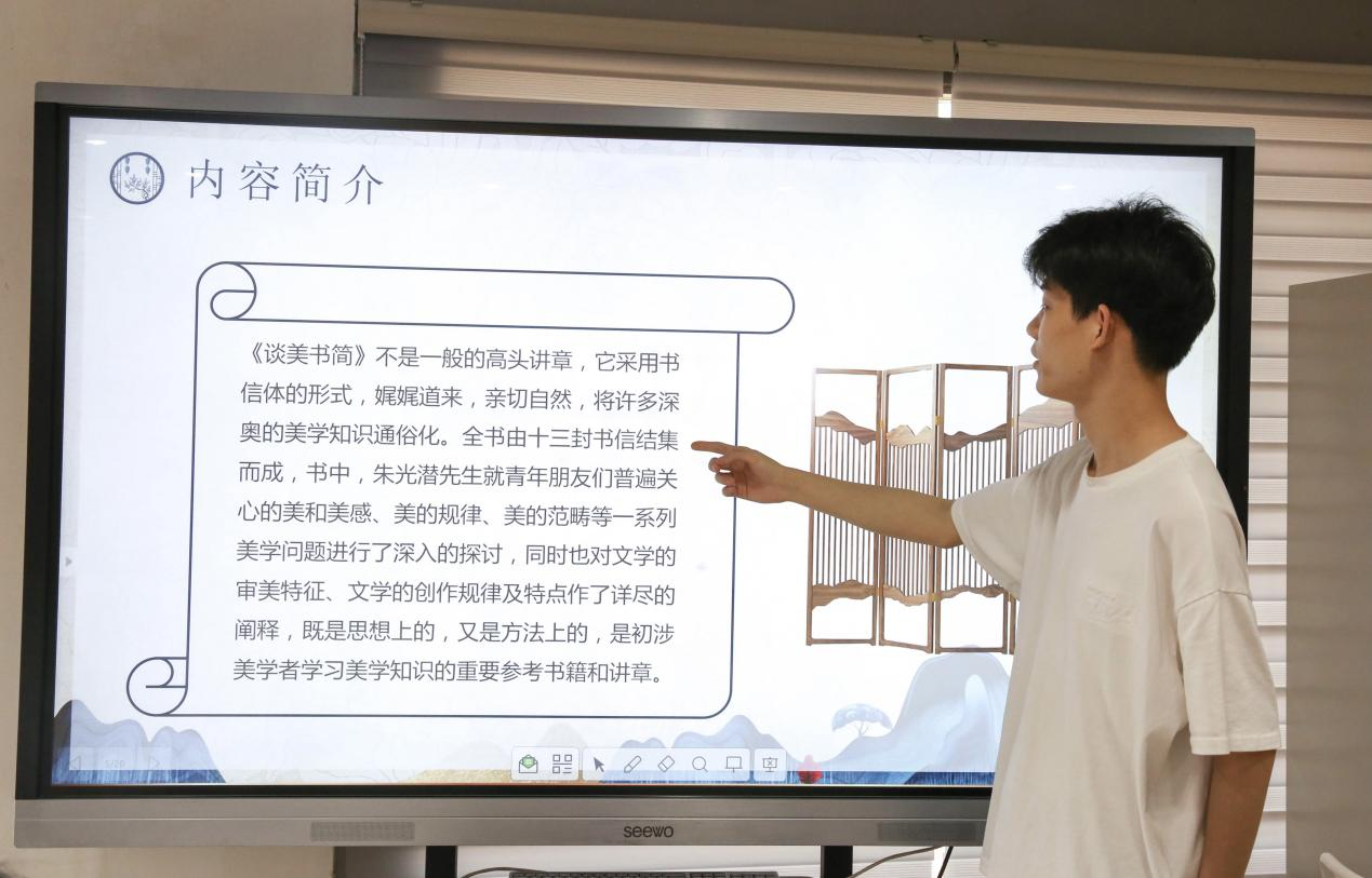 姚佳慧老师充分肯定了同学们饱满的学习态度和真挚阅读分享。她指出《谈美书简》不仅仅阐释美学,更蕴含着“做老实人,说老实话,干老实事”的人生哲理。“朱光潜先生将勤恳认真与严谨踏实的人生态度娓娓道来,这让人受益匪浅。”姚佳慧老师希望同学们以审美的心态面对现实生活,热爱生活,享受人生。“认真把生活中的每一件事做好就是最酷的!”她笑着和同学们说。