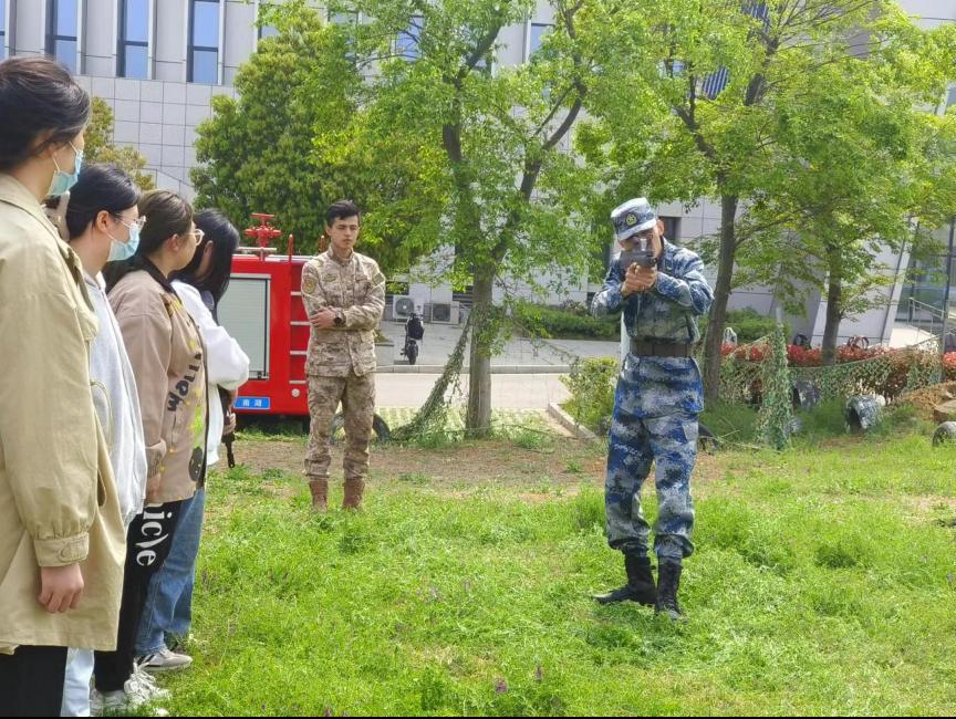 为了让学生了解基本军事知识和技能,4月14日,人文学院组织汉语言文学2021-1班全体学生来到到学校国防教育基地进行参观体验。退役大学生士兵阿热帕提江·吐尔洪和夏皮开提·肖开提担任教官,指导同学们完成了训练和体验。