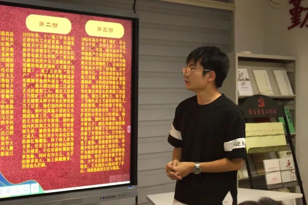 在兰苑一号楼学生党员工作站开展了“自远”读书会系列活动之“我与班级共读书”第十二期活动。汉语22-1班班主任李广文和汉语22-1班全体同学参加活动。活动由汉语22-1班团支部书记王英昊主持。