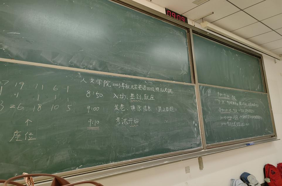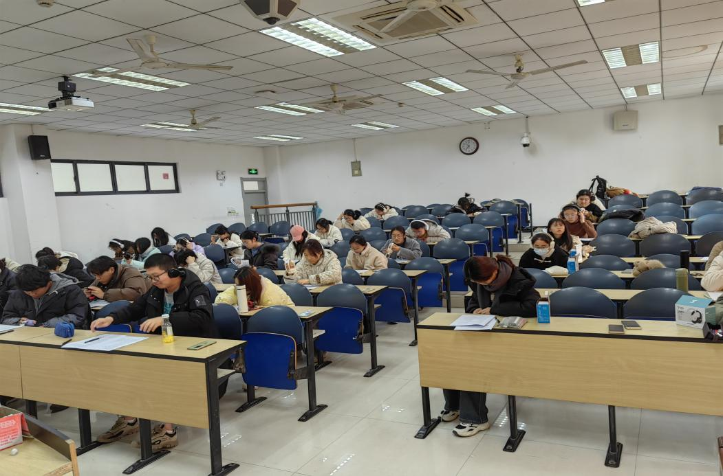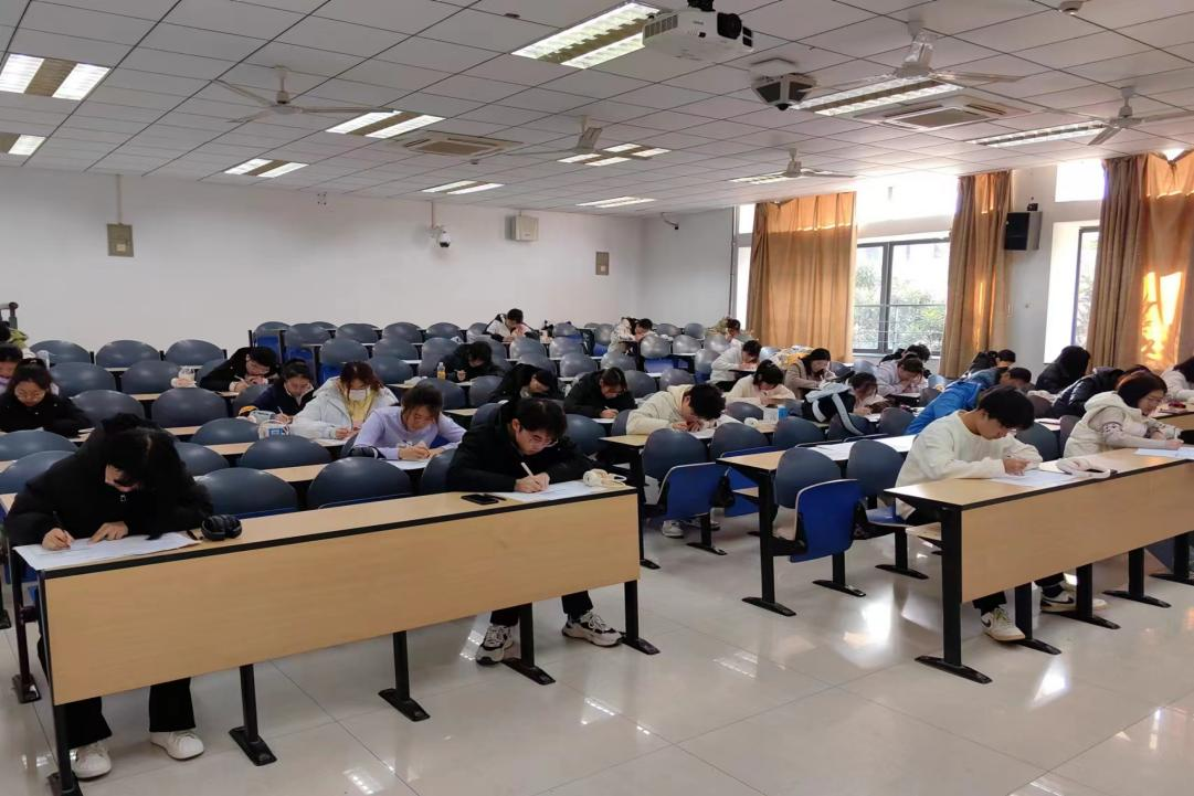 上午9点,四级模拟考试正式开始,94位参赛学生根据通知时间来到指定教室参加考试。在参赛学生和工作人员的协力配合下,考场秩序井然,考试过程有条不紊。监考人员在考试前协助同学签到落座,分发试卷和答题卡,以黑板板书的形式标明各考试内容的时间节点安排,按照工作流程卡进行口头指令,对考生予以注意事项和考试流程的提醒,发布开考指令,并在考试后提醒考生完成答案上传。后期,学习部将公布答案解析,通知同学们进行考试成绩查询。
