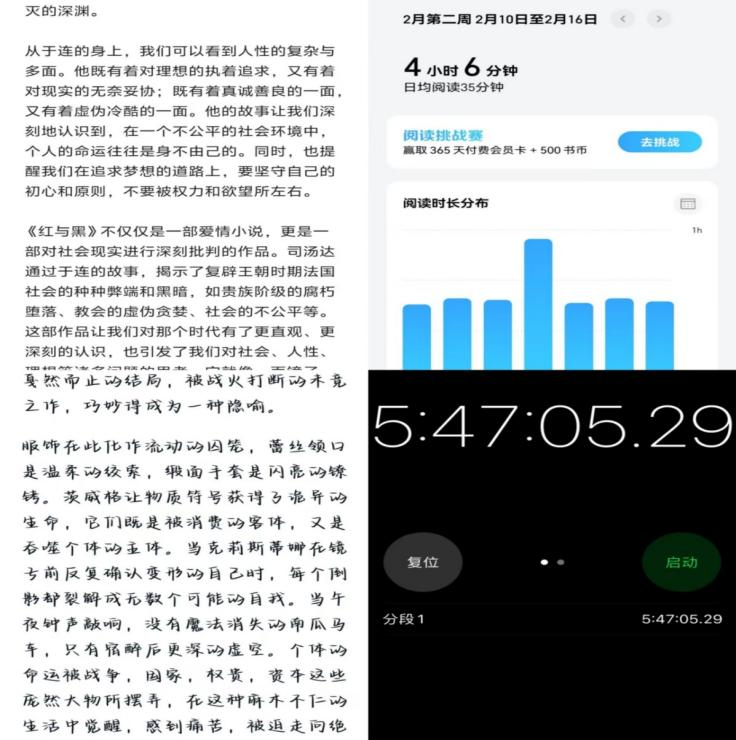 学生会精心设置了多元阅读板块,涵盖文学名著、历史传记、艺术鉴赏等多个领域,满足不同学生的阅读偏好。参与该活动的同学需在每日截止时间前上传当日的阅读时长证明和不少于200字阅读心得,要求同学们针对选取的书籍进行深度解读,从写作背景、人物塑造到主题思想剖析等方面分享自己的阅读感悟,以帮助大家更好地理解作品内涵,提升阅读质量。活动结束后由学习部的工作人员统筹总结,打卡满21天的同学可以获得奖励,活动结果最终在活动群内进行公示。从打卡记录来看,同学们阅读量持续增长,阅读笔记愈发详实深刻,彰显坚持阅读带来的显著成效。