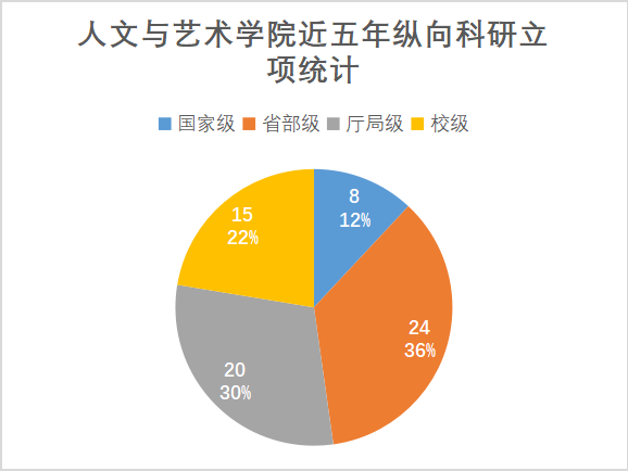 教师共获得各级别纵向科研立项65项,其中国家级和省部级立项共30项,占立项总量的46%(统计见图:麻豆av