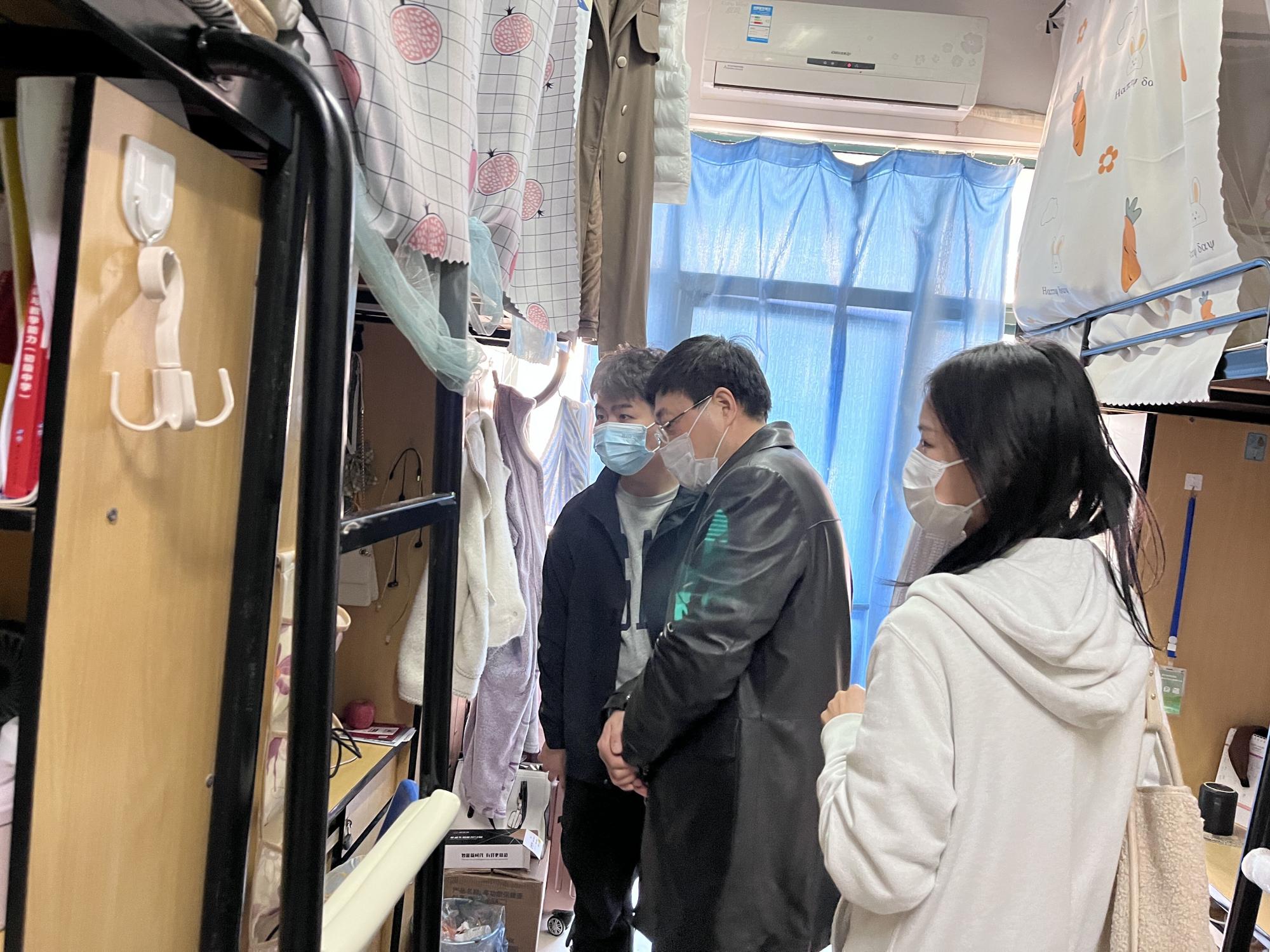 本次活动主要检查了学院研究生在宿舍卫生、用电安全、疫情防控等方面是否存在违规行为。检查组未发现抽烟和使用违规电器的情况,可见学院开展的一系列宿舍文化宣传活动使同学们的安全意识得到了较大的提升。李院长与同学们热情交谈并提醒同学们面对疫情防控的新要求,要注意宿舍通风及个人卫生,尽量减少室外聚集,出入食堂要正确佩戴口罩,严格做好疫情防控工作。