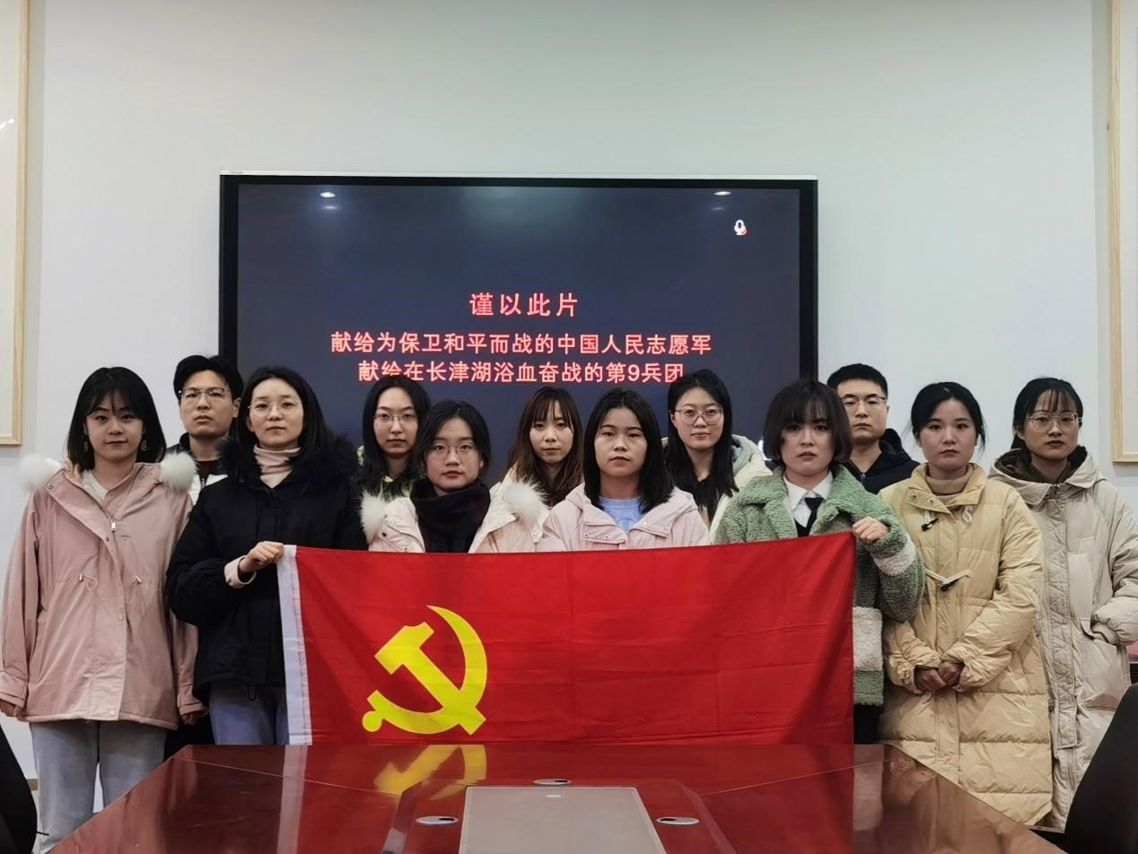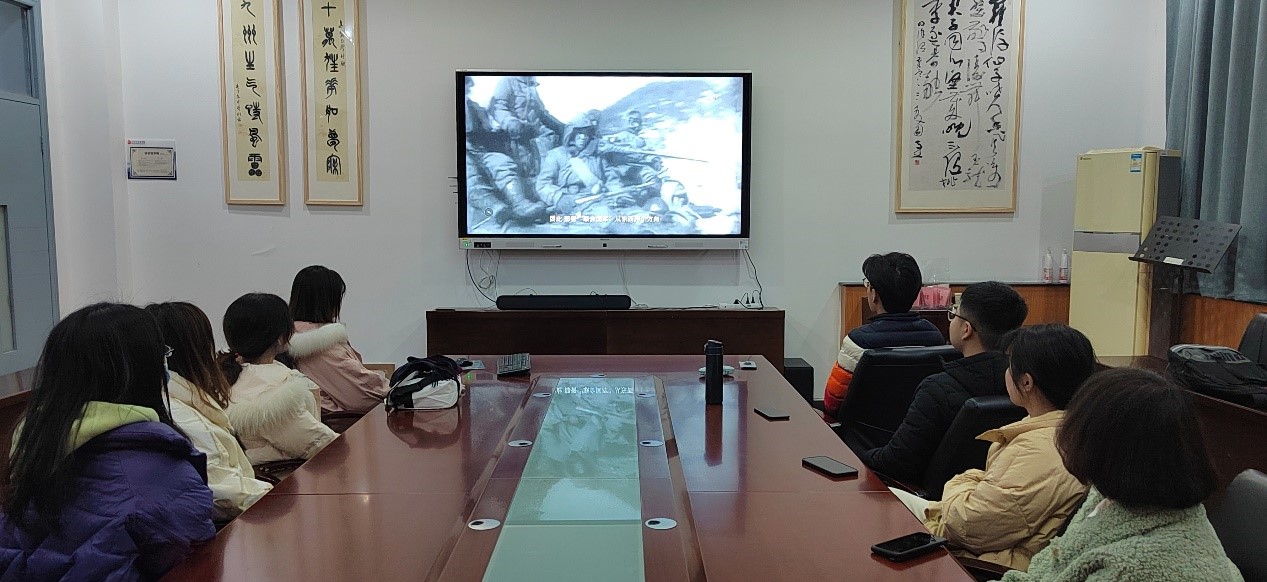 2020级研究生第一党支部于1月2日,在学院楼A110开展了以“缅怀革命先烈,牢记党的宗旨”为主题的党日活动,大家一同观看了八一电影制片厂出品的纪录片《冰血长津湖》。