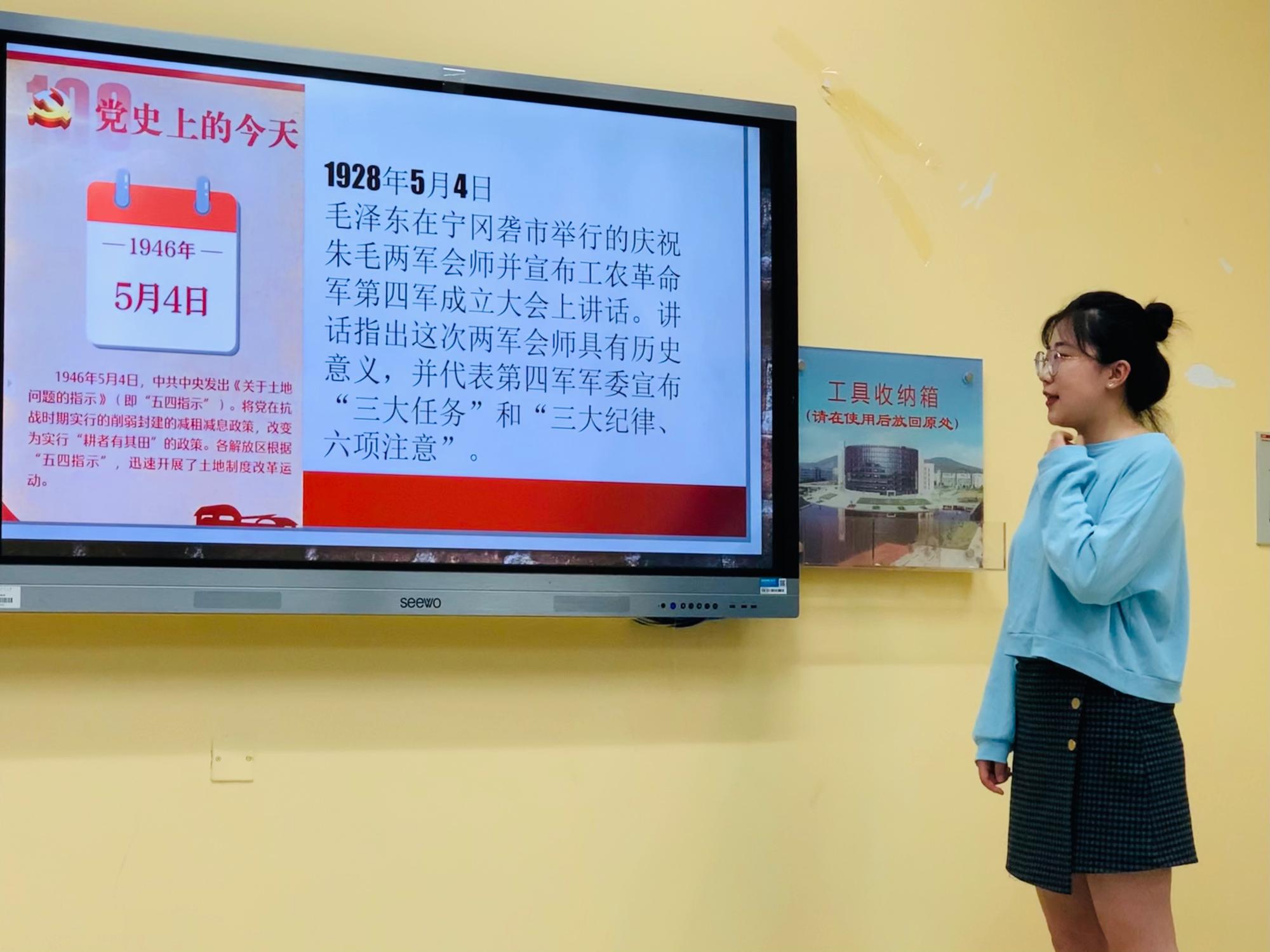 党员工作站在博四C107教室举行全体例会,本次会议的主要内容是共同观看五四宣传视频《青春与祖国同在》,并了解学习“党史上的5月4日”相关党史知识。此次会议由党站副站长常明慧主持,党站全体成员出席。