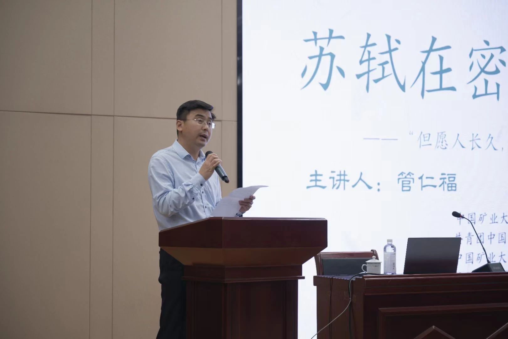 镜湖大讲堂开讲“诵读经典,走进苏东坡”系列讲座第一讲:苏轼在密州——“但愿人长久,千里共婵娟”。讲座由校宣传部副部长许臣主持,徐州市苏轼文化研究会陈新生会长等嘉宾出席。