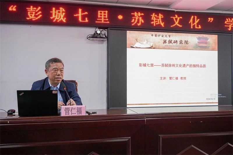 苏轼研究院院长、徐州市苏轼文化研究会副会长管仁福教授作了题为《彭城七里——苏轼徐州文化遗产的独特品质》的学术报告。