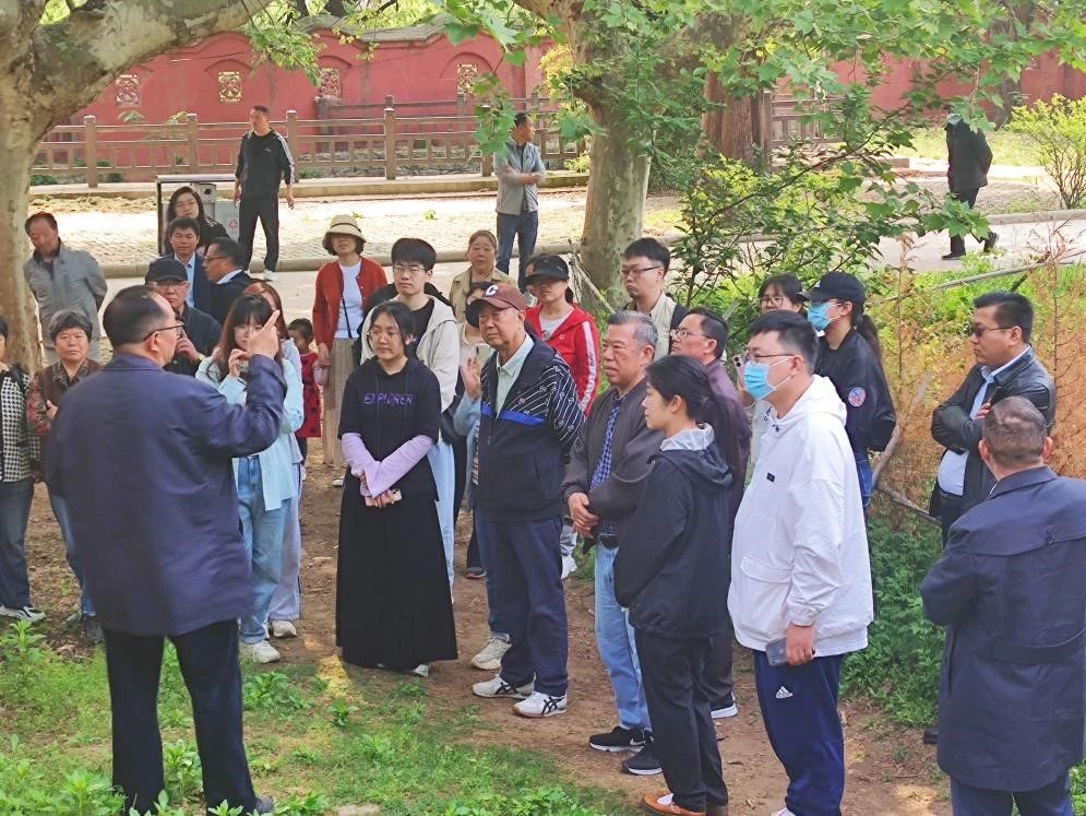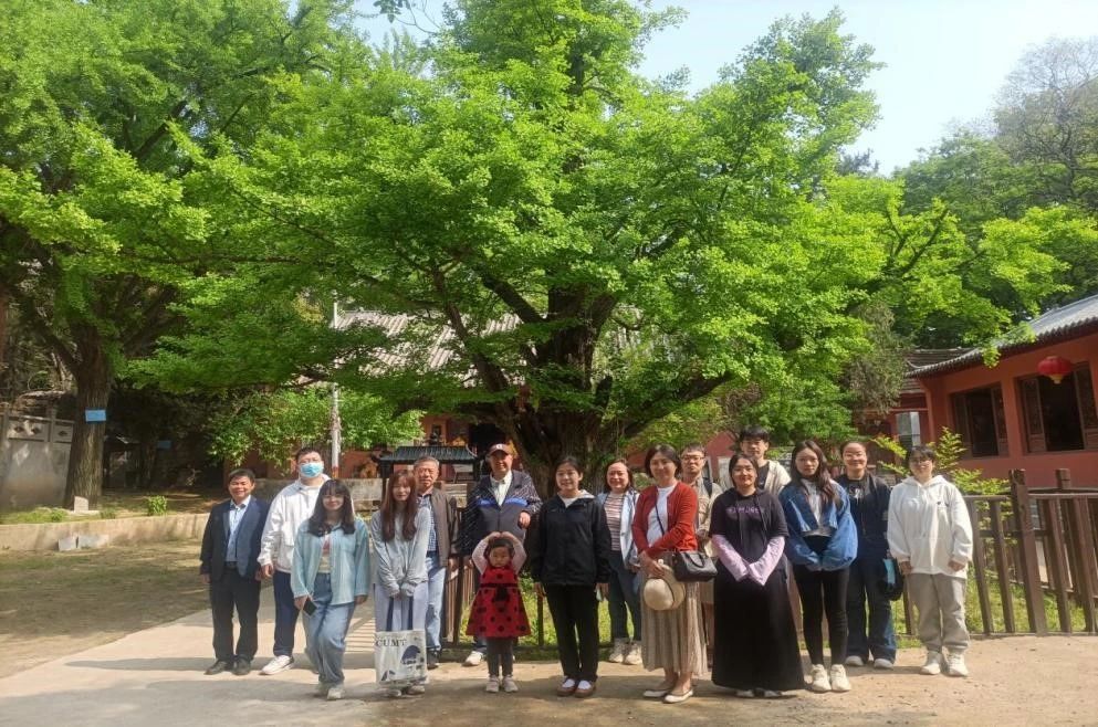 寺庙内银杏参天,柏松傲立。师生们都被眼前枝繁叶茂的银杏树所吸引,纷纷合照纪念。有的师生更是直接吟诵《题流沟寺古松》中的诗句“烟叶葱茏苍麈尾,霜皮驳落紫龙鳞。”拥有六百年悠久历史的银杏树,见证着镇头寺历史悠久的同时,也寄寓了白居易的个人心境。
