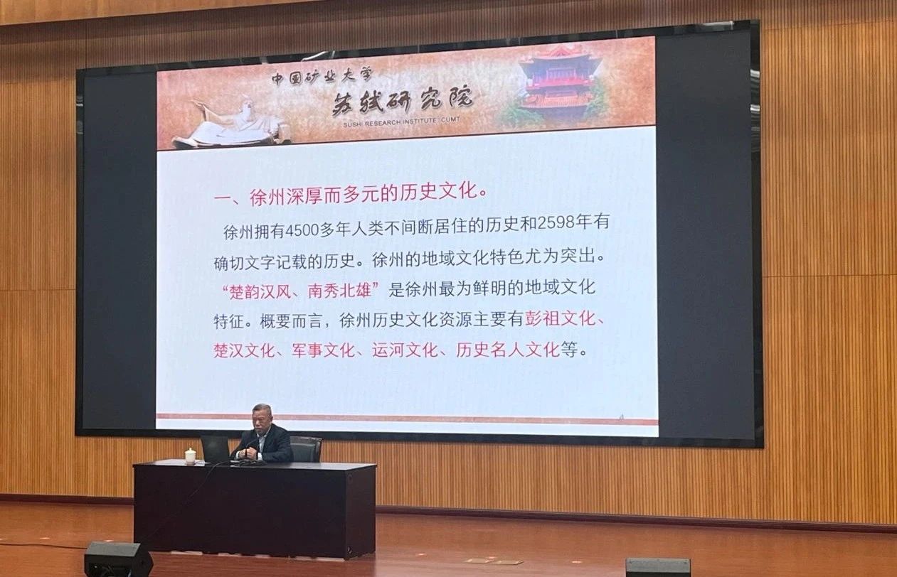 管院长以《彭城七里——苏轼徐州文化遗产的独特品质》为主题作了约90分钟的专题讲座。管院长指出,徐州历史悠久,文化底蕴深厚,拥有彭祖文化、楚汉文化、军事文化、运河文化、历史名人文化等多种文化资源。彭祖文化中的烹饪术、养生术影响深远,彭祖被尊为厨师行业祖师爷,其代表美食雉羹流传至今;楚汉文化方面,徐州是两汉文化发源地,汉文化景区和汉画像石艺术馆成为城市文化名片;军事文化上,徐州自古为兵家必争之地,铸就了独特的地域品格;运河文化也在徐州有着丰富的遗迹,目前正处于普查规划阶段。