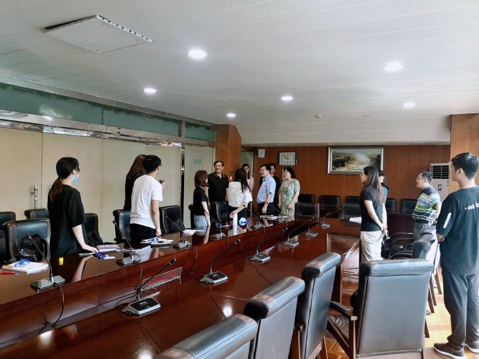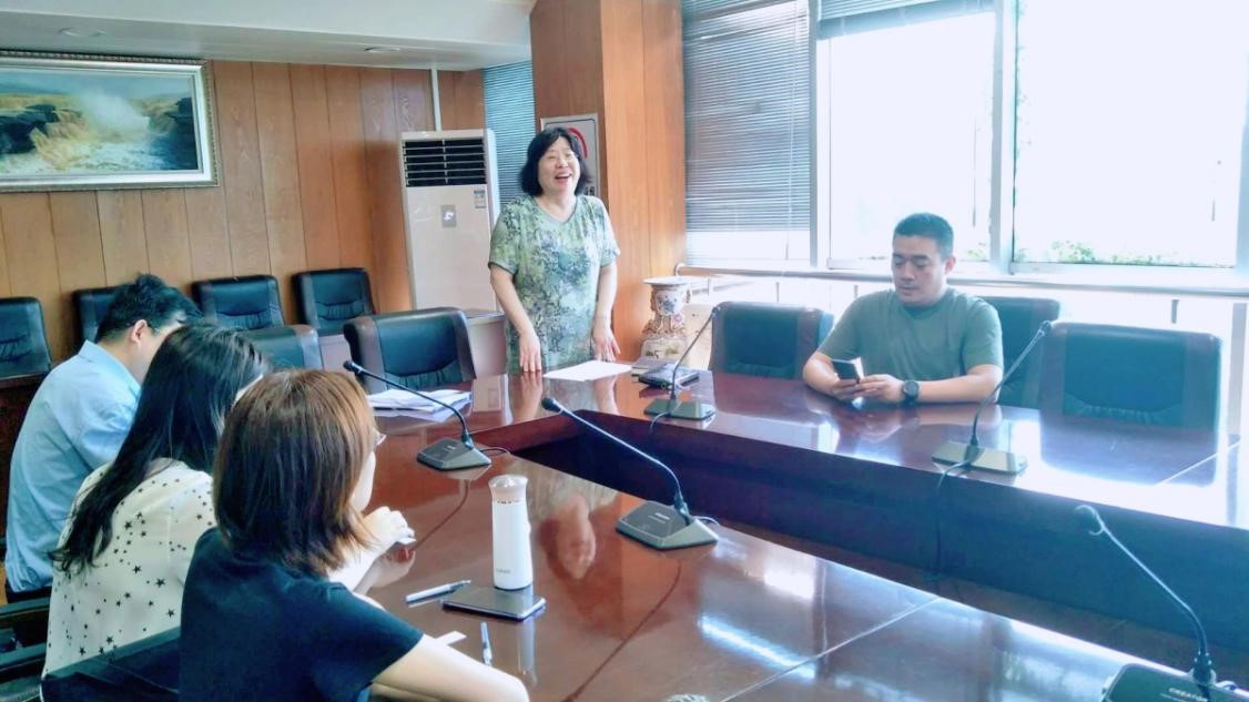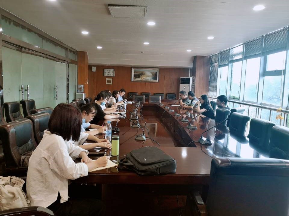 9点30分,早已等候的徐州广播电视台人力资源中心陈瑜主任热情接待了我们。在实习工作会上,陈瑜主任向同学们讲解了徐州电视台的历史、部门组成和未来的发展方向。陈瑜主任为我们办理了单位的出入证明,向我们分发了工作证,并向同学们细致说明了实习期间的注意事项,包括电视台日常的规章制度、作息时间安排等。陈瑜主任还在微信工作群中再次强调我们要特别注意防暑,注意自我安全的防护,可谓贴心至极。