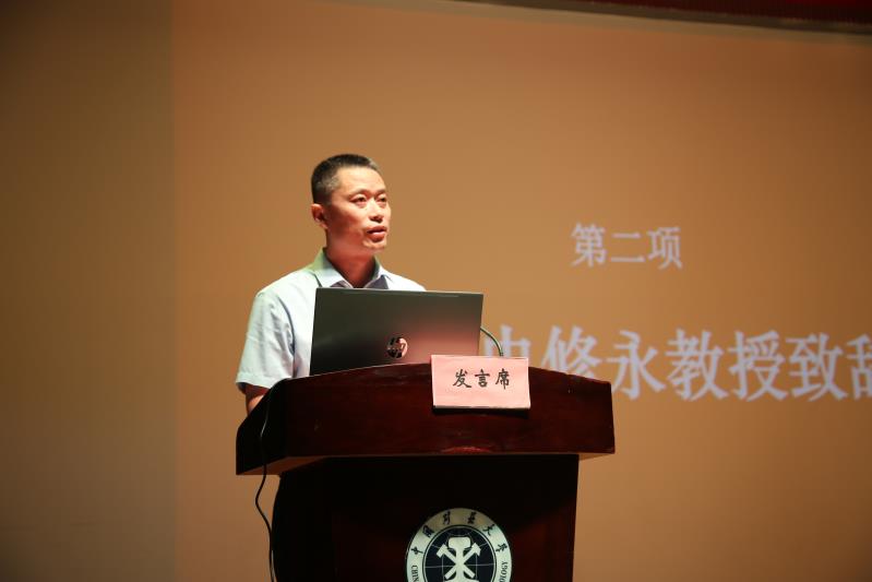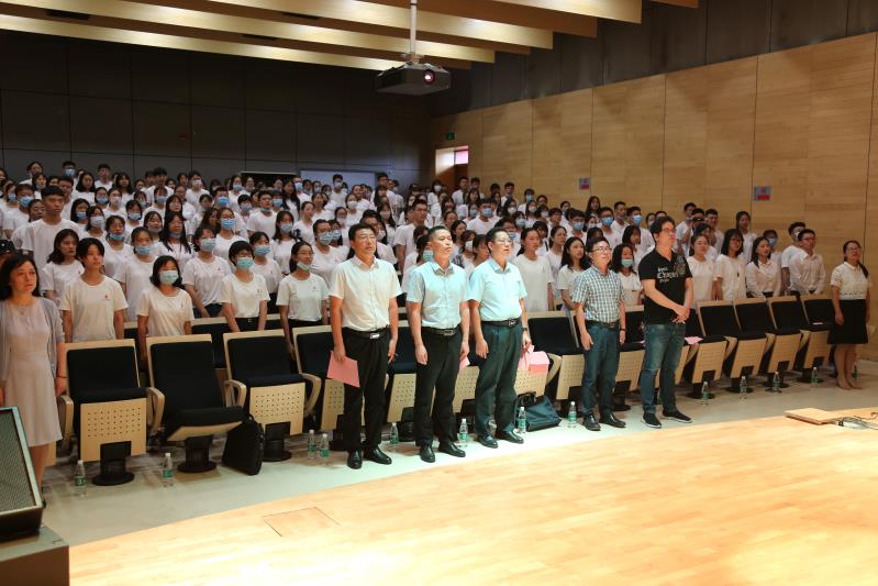 史修永院长对新生进行致辞。史院长从抗击新冠肺炎疫情这一战“疫”出发,告诉同学们生命至上,希望同学们能够尊重生命、崇爱生命、珍惜生命、敬畏生命,能够践行奋发勇为的责任担当,将青春热血才华投入到学习当中,投入到为更多人谋取幸福,投入到人类休戚相关的生命共同体建设当中。