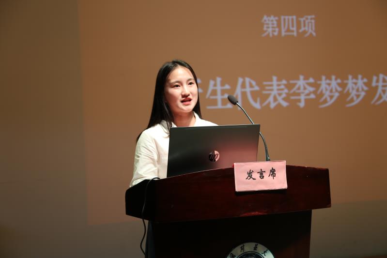 院长致辞后,18级本科生张晋博同学、20级本科生李梦梦同学分别作为高年级学生代表和新生代表进行发言。张晋博同学用“适应”、“惜时”、“规划”三个关键词,表明了自己对大学生活的看法,寄托自己对学弟学妹们的美好祝愿。李梦梦同学则表示要尽快适应大学的新环境、新生活,树立正确的世界观、人生观、价值观,自觉抵制不良诱惑,为社会传递正能量,做一个对社会、对他人有用的人。
