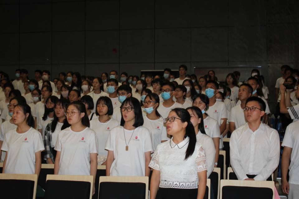 会议伊始,全体师生起立,齐声奏唱国歌。全场在共同欣赏了诗歌朗诵《从南湖起航》后,开学典礼正式开始。