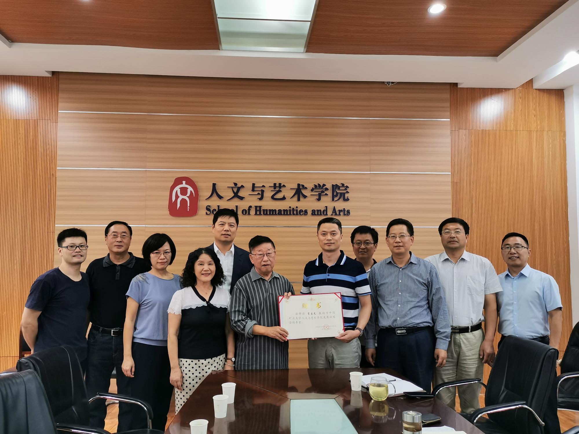 方跃平书记主持聘任仪式,史修永院长介绍学院组建以来的发展情况、办学成果、发展规划,并为肖庆元教授颁发人文学院发展战略咨询专家聘任证书。