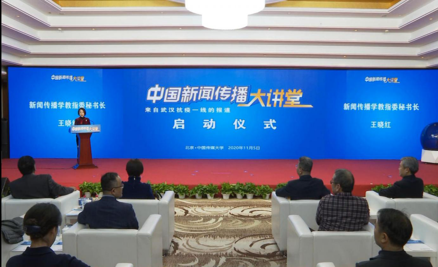 11月5日下午,由教育部思政司和中宣部新闻局委托高校新闻传播学类教学指导委员会(以下简称教指委)举办的中国新闻传播大讲堂,在中国传媒大学正式启动。教育部高教司司长吴岩,中宣部新闻局副局长赵旭雯,中国传媒大学党委书记兼校长廖祥忠,新闻传播学教指委主任委员高晓虹,新华社总编室副主任、新华社武汉抗疫报道前指总指挥刘刚等,在主会场出席启动仪式并发表讲话。启动仪式由新闻传播学教指委秘书长王晓红主持。麻豆av